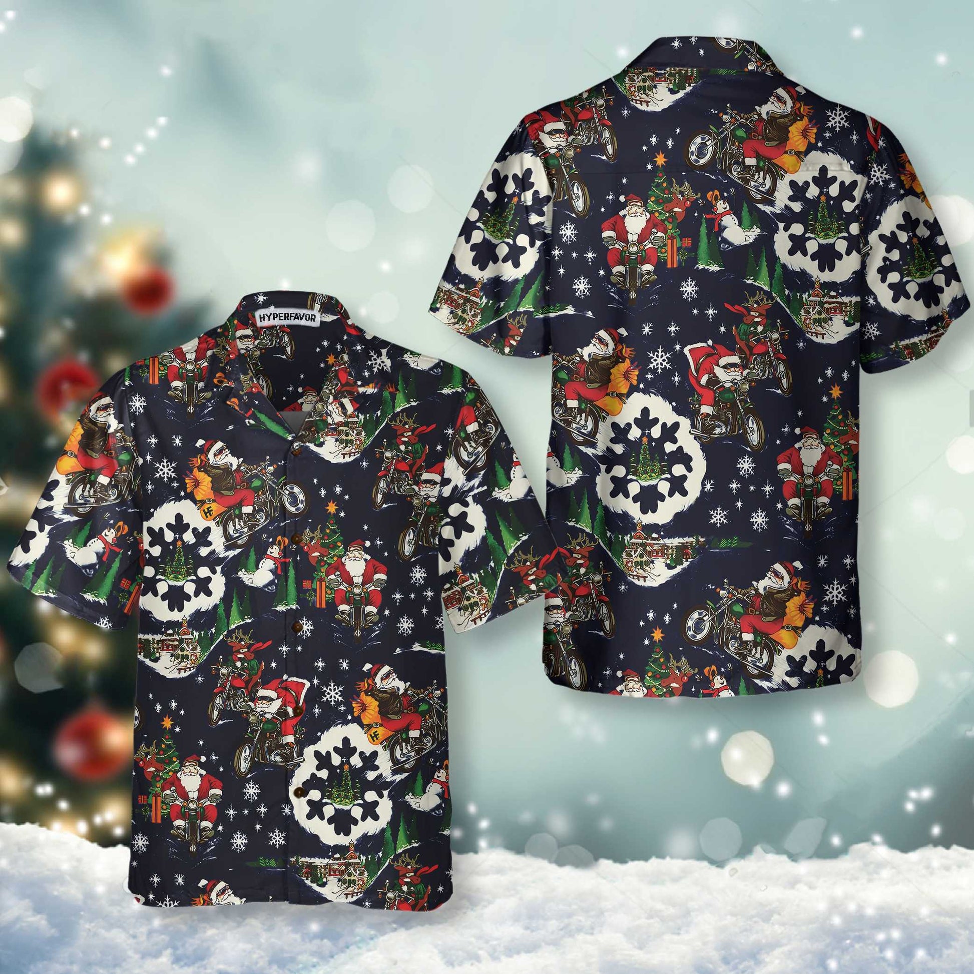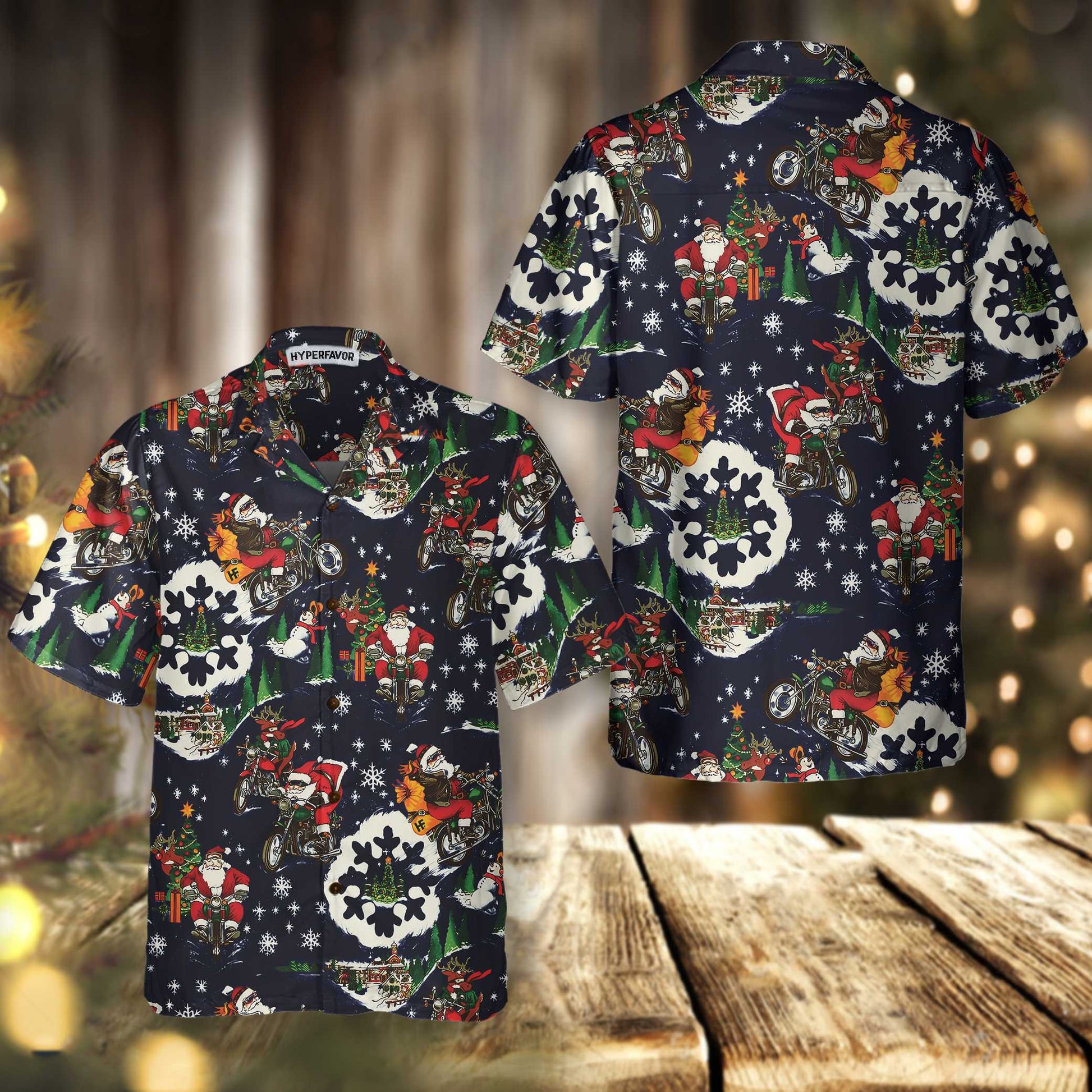 Luvik | Santa moottoripyörällä Sininen jouluhawaiipaita miehille, Hauska joululahja moottoripyöräilyn ystäville