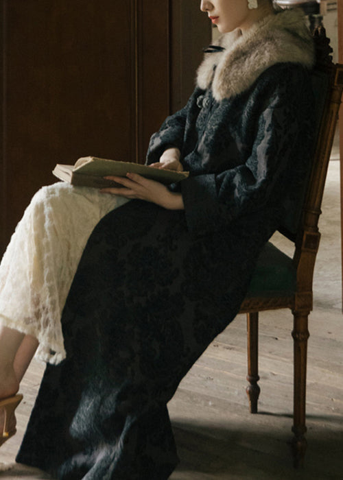 Luvik | Keinotekoinen turkis kaulus musta Nappi Printti Villakangastakit Pitkät hihat
