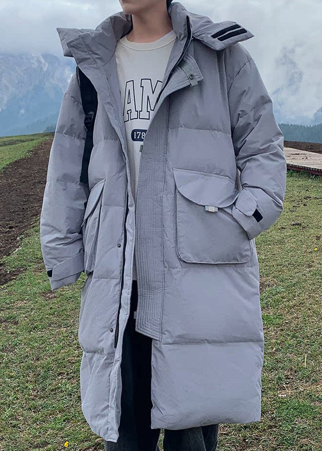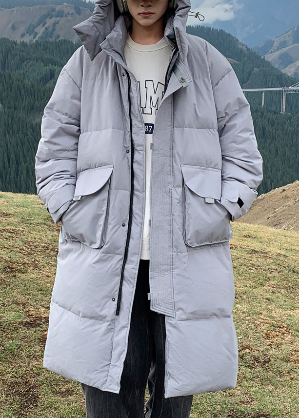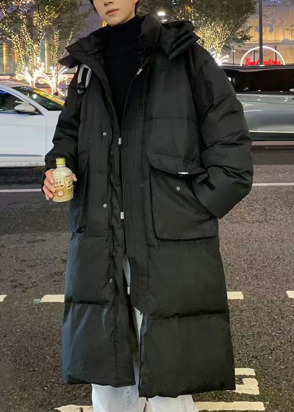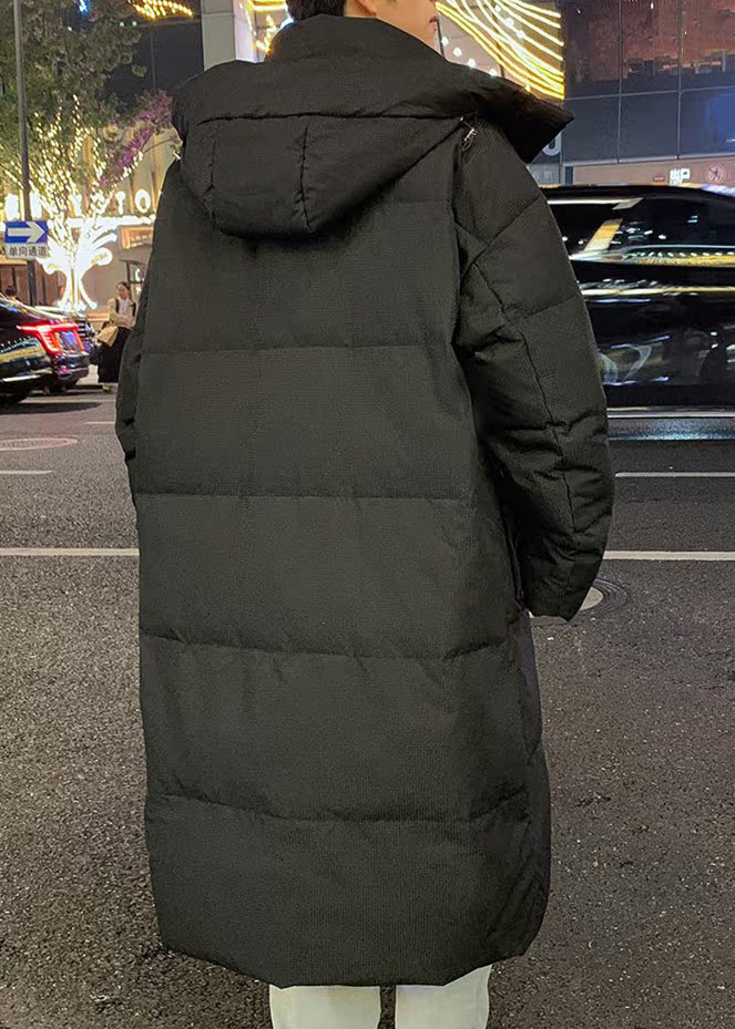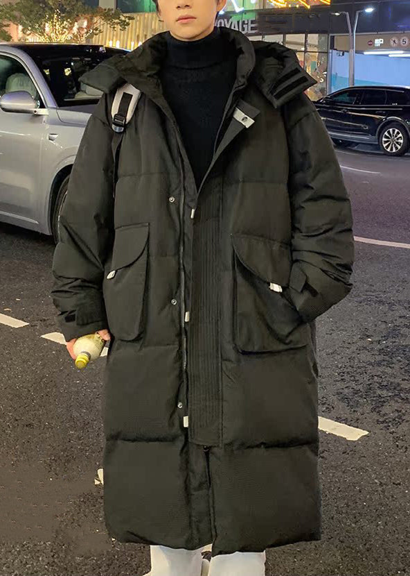 Luvik | Musta hupullinen takki, jossa on ankka-untuvapocketit miesten talvitakit
