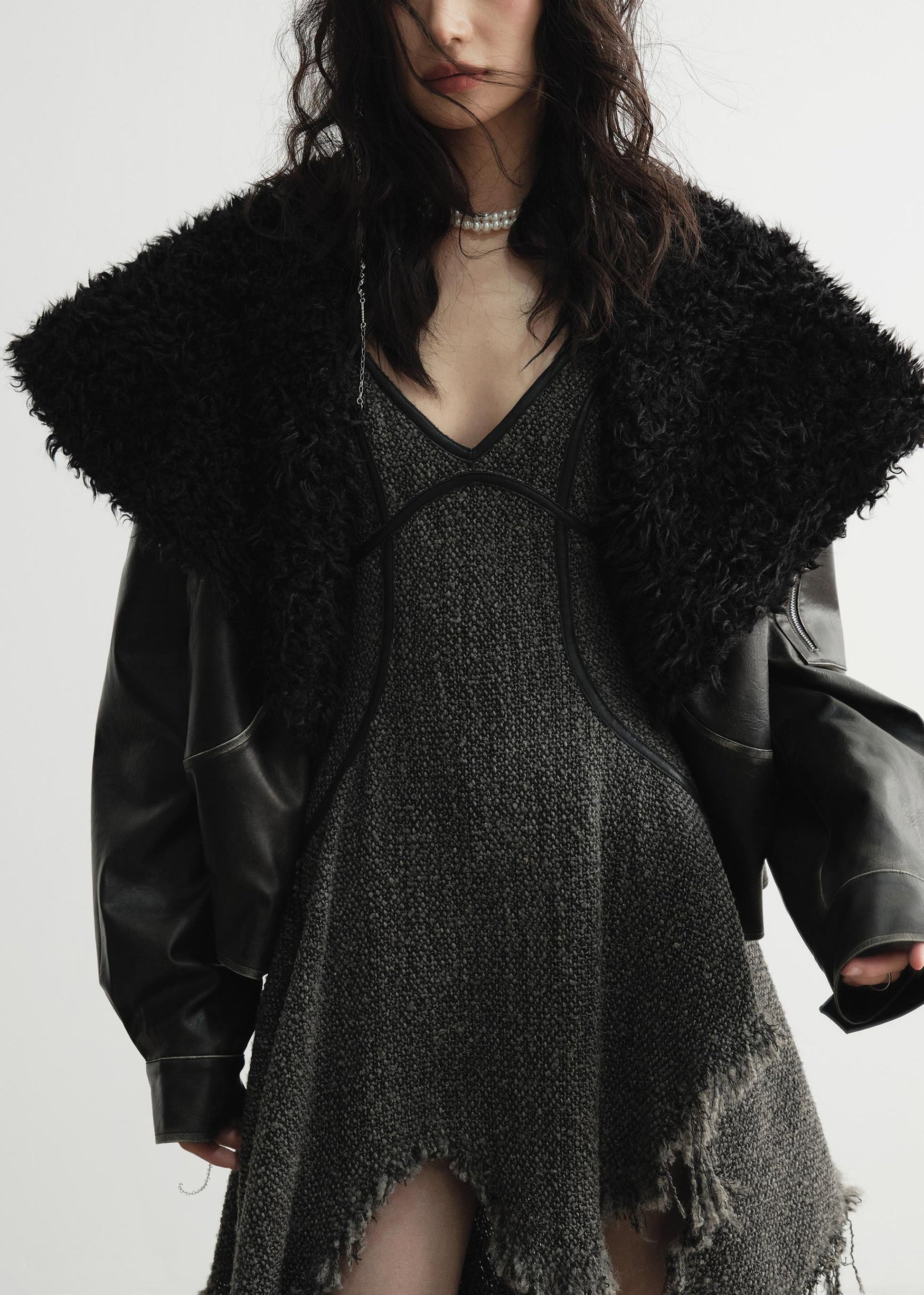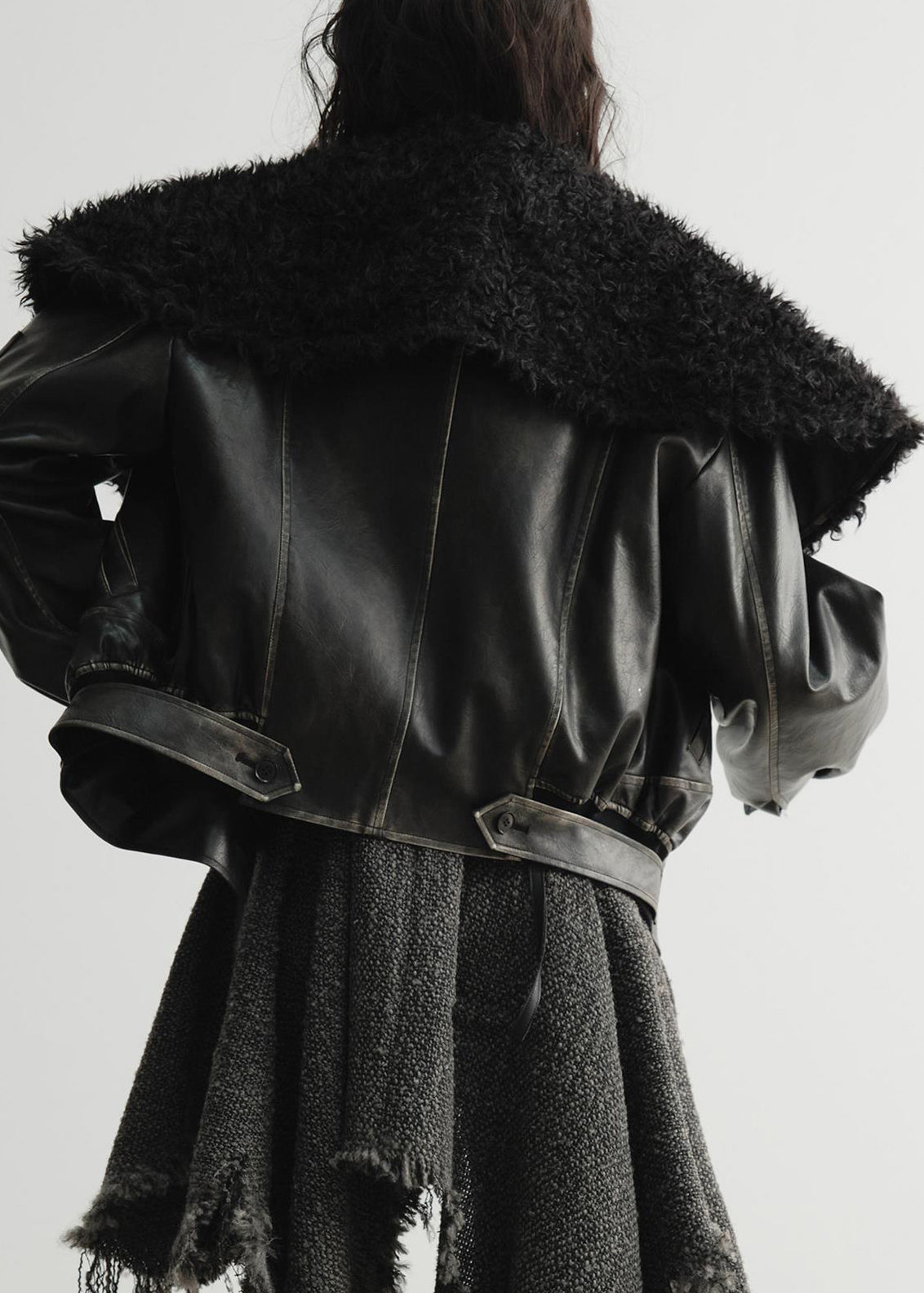 Luvik | Tekonahkakuoret taskuilla ja mustalla turkiskauluksella
