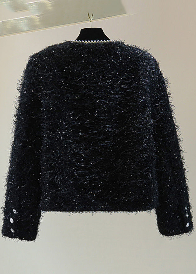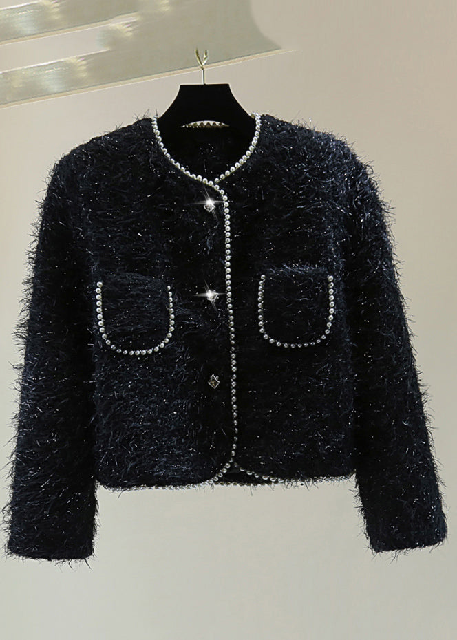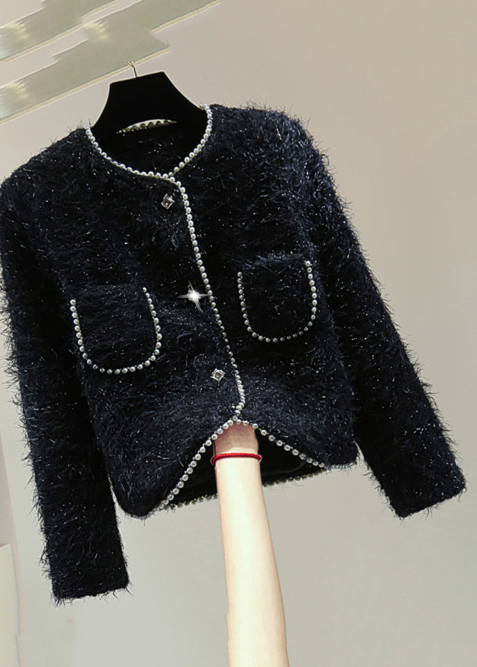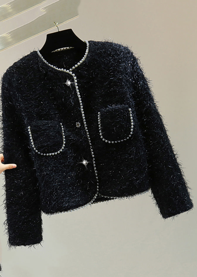 Luvik | Talvi takki, jossa on läpivärjäyksellä, taskuilla, helmillä ja niiteillä, mustalla O-kaula-aukolla