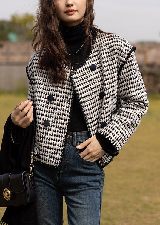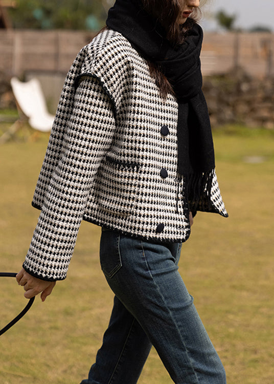 Luvik | Mustasta puuvillasta valmistettu patchwork-takki O-kauluksella ja kaksinkertaisella rinnalla