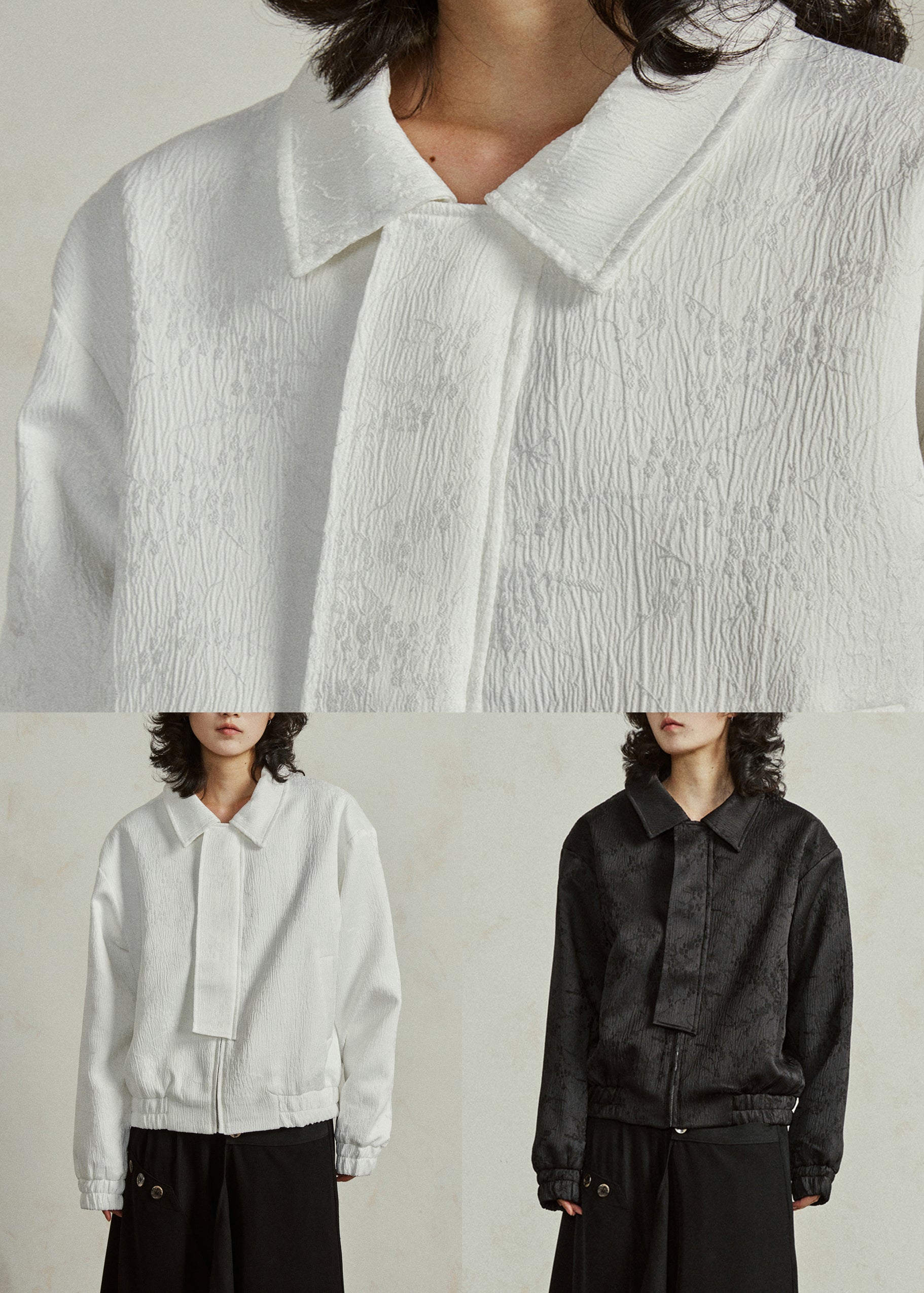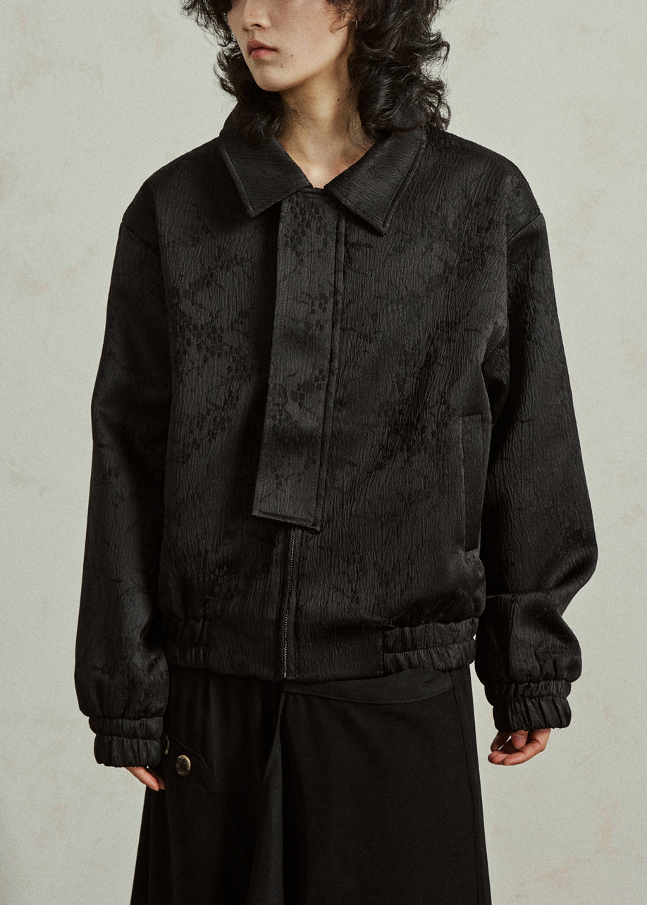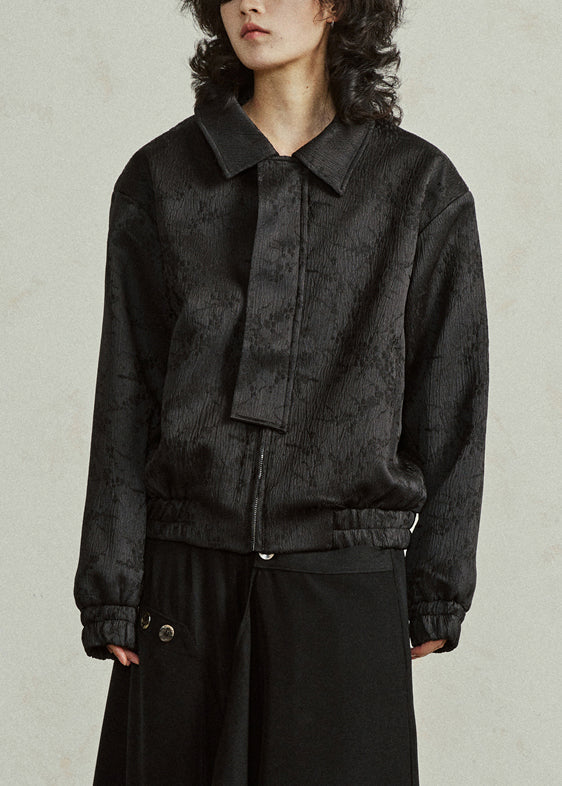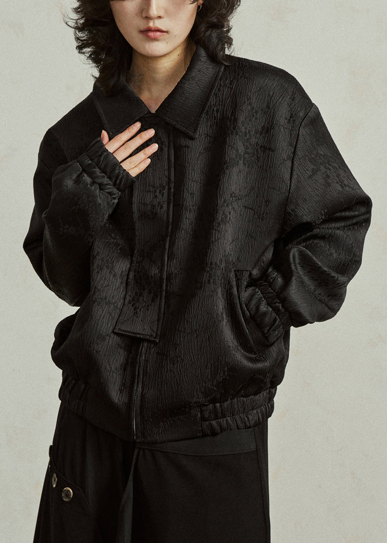 Luvik | Musta Peter Pan -kauluksellinen silkki takki vetoketjulla