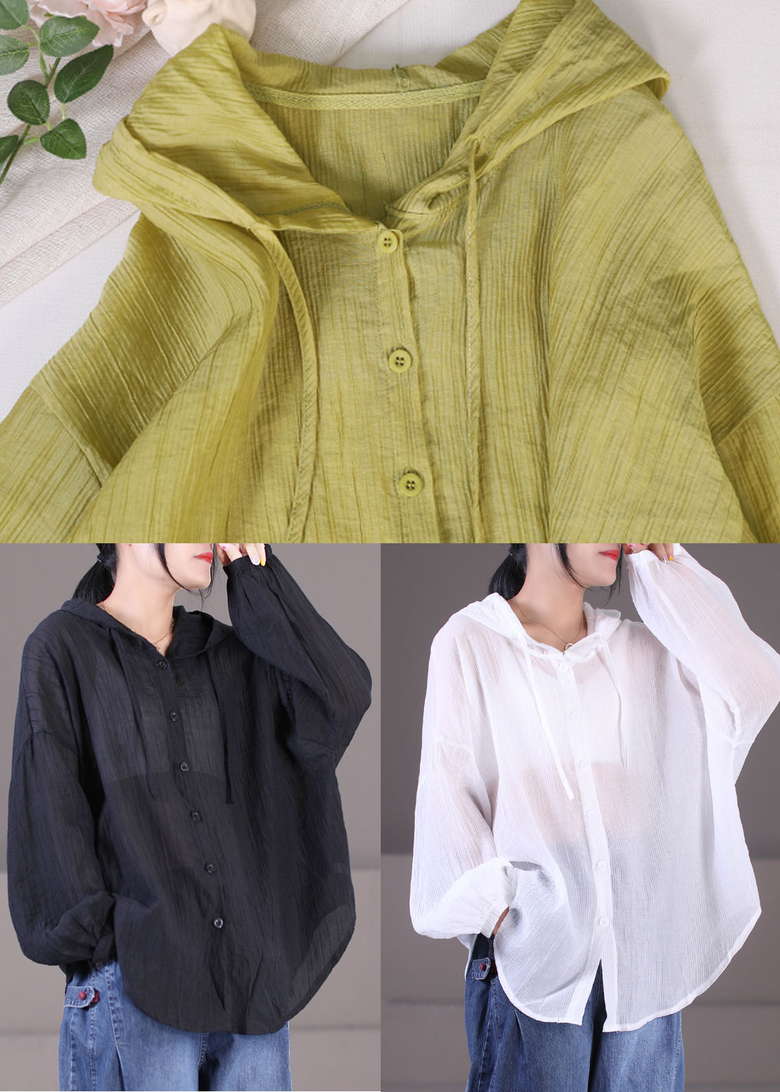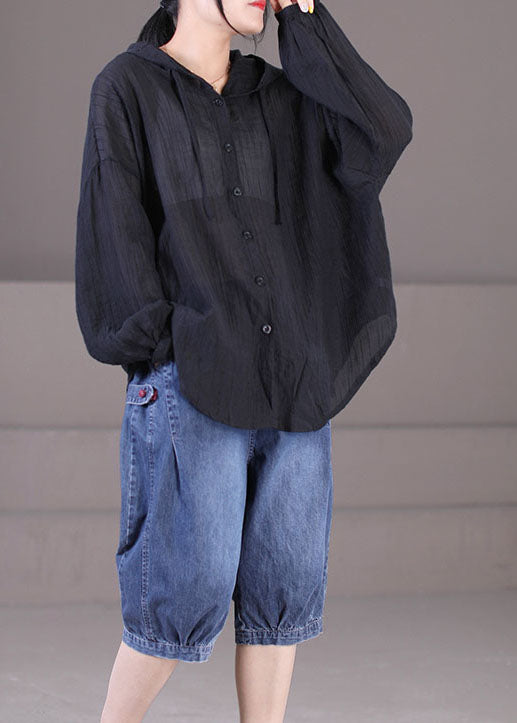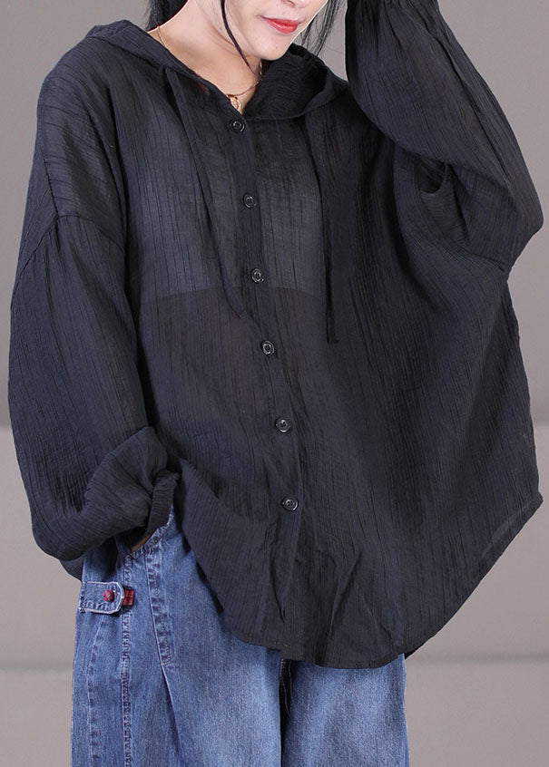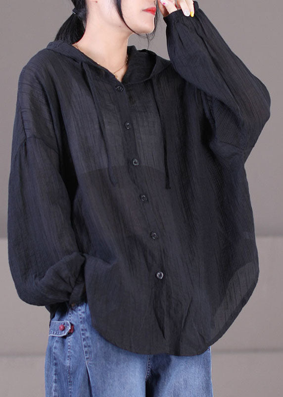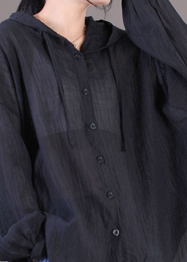 Luvik | Musta puuvilla UPF 50+ takki suuri koko pitkä nauha hihat