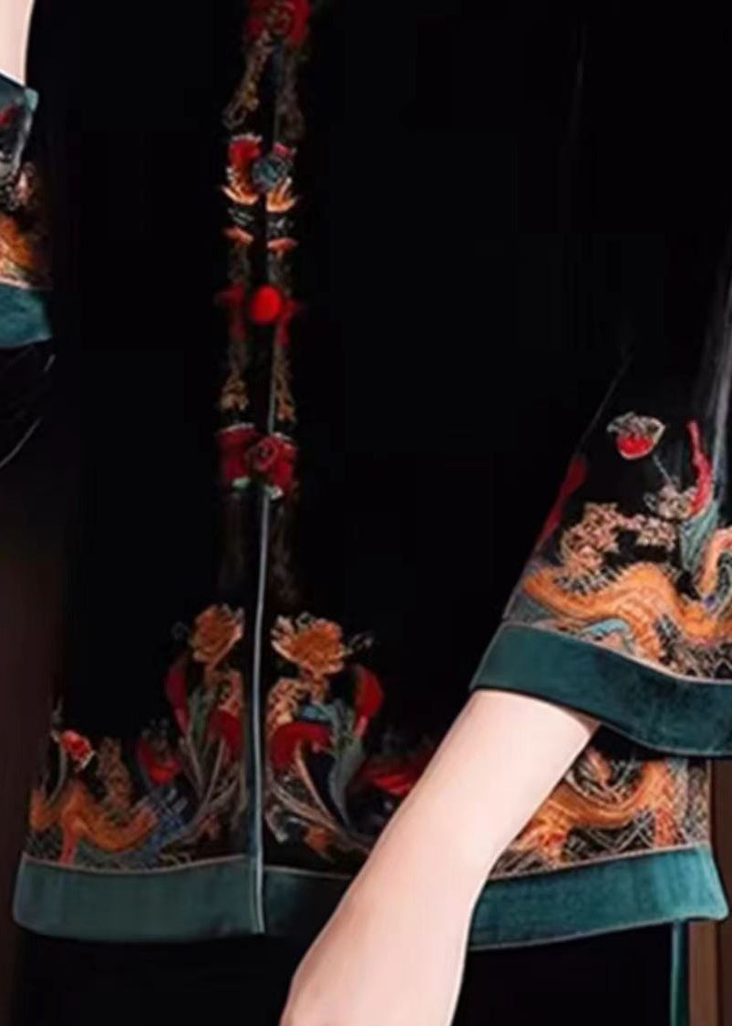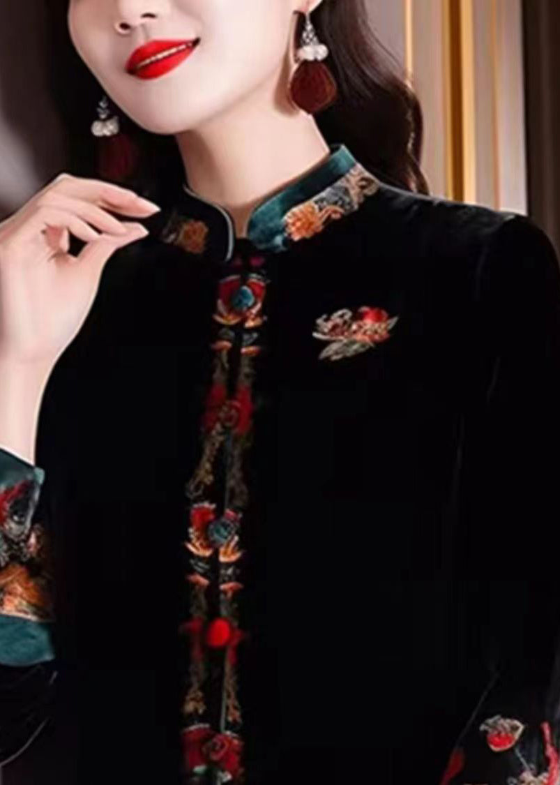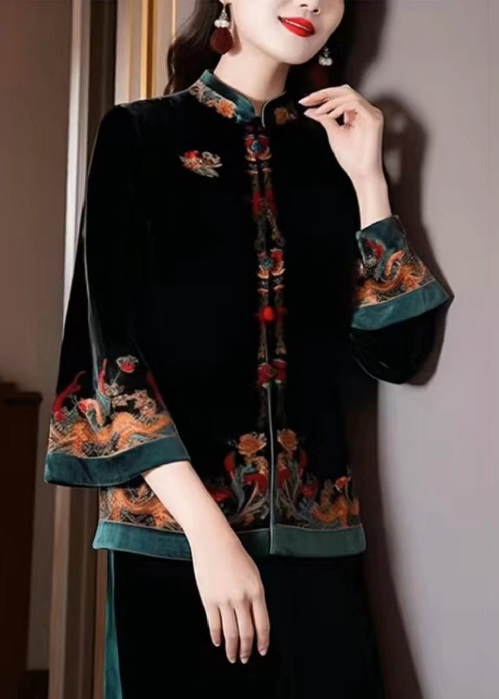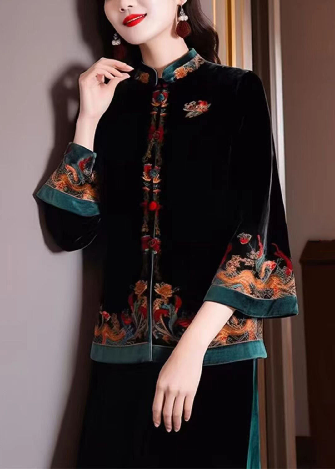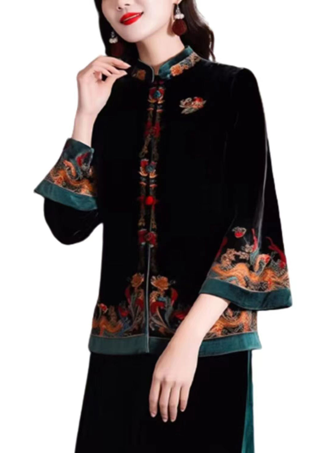 Luvik | Mustat napitettu silkkitakki, jossa on korkea kaulus