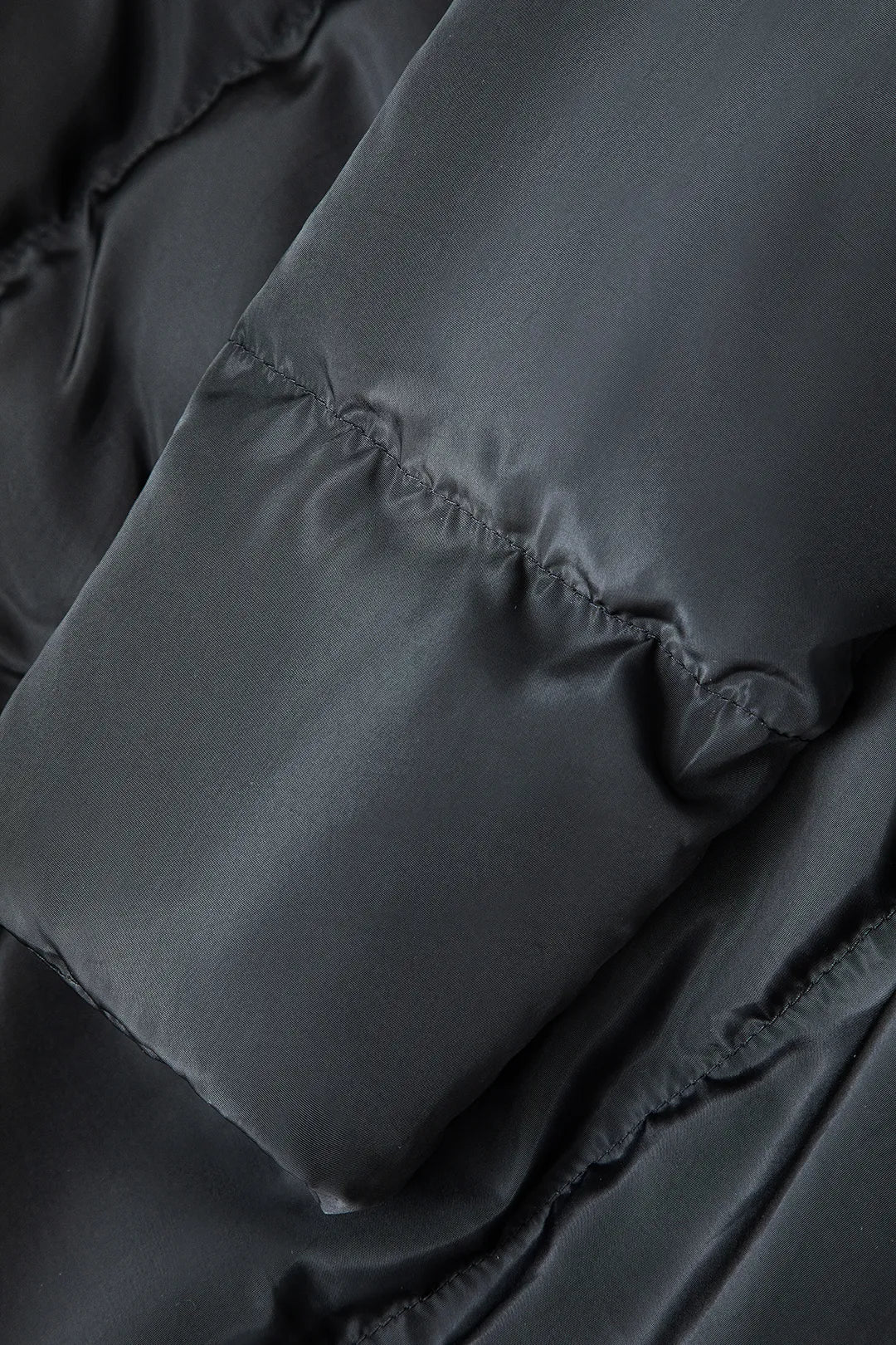 Luvik | Musta pystykaulus leikkauksella varustettu puffertakki