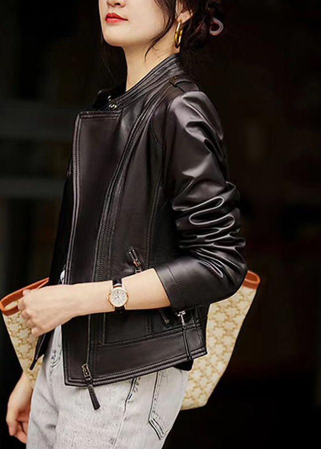 Luvik | Lampaannahasta valmistettu patchwork-takki mustalla korkea kauluksella ja vetoketjulla