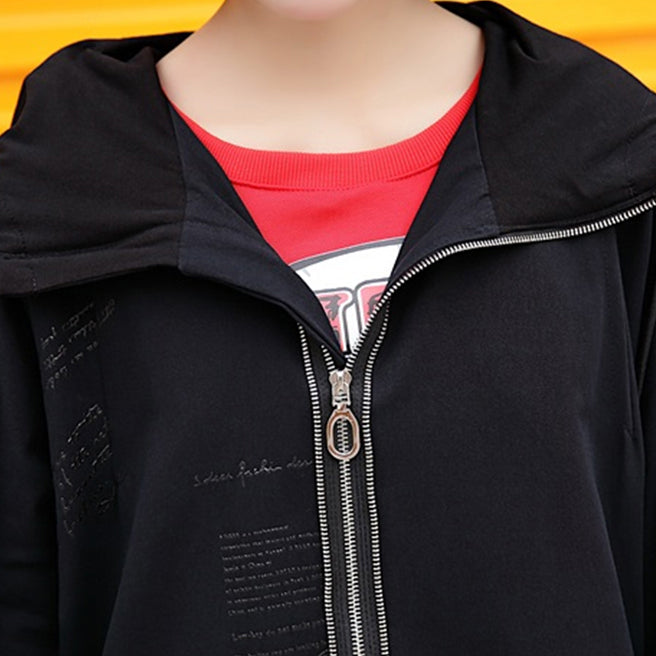 Luvik | musta takki suurikokoinen hupparitakki muoti vetoketjulla pitkä naru takit