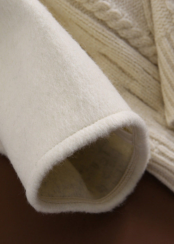 Luvik | Mustasta villasta valmistettu tilkkutakki napilla ja V-pääntiellä, pitkähihaisia