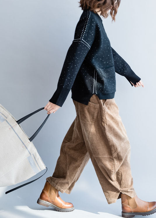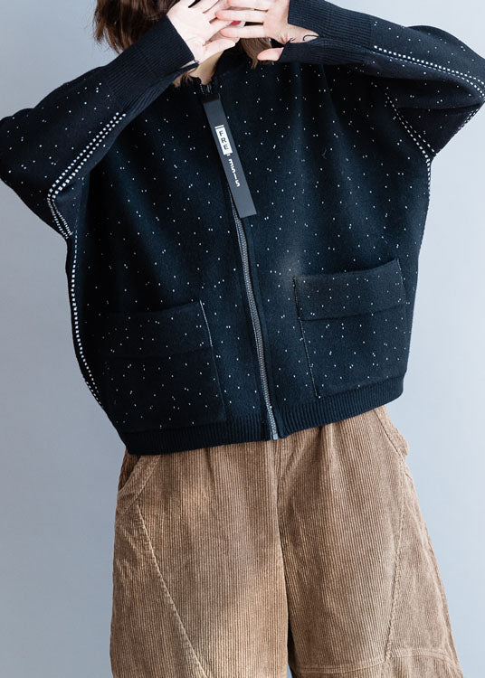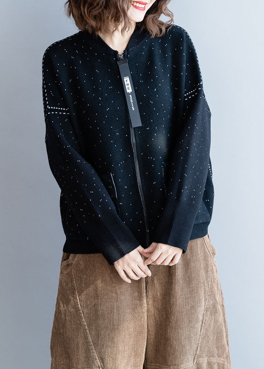 Luvik | Musta korkeakauluksinen neuletakki, jossa on vetoketju ja talvipisteet
