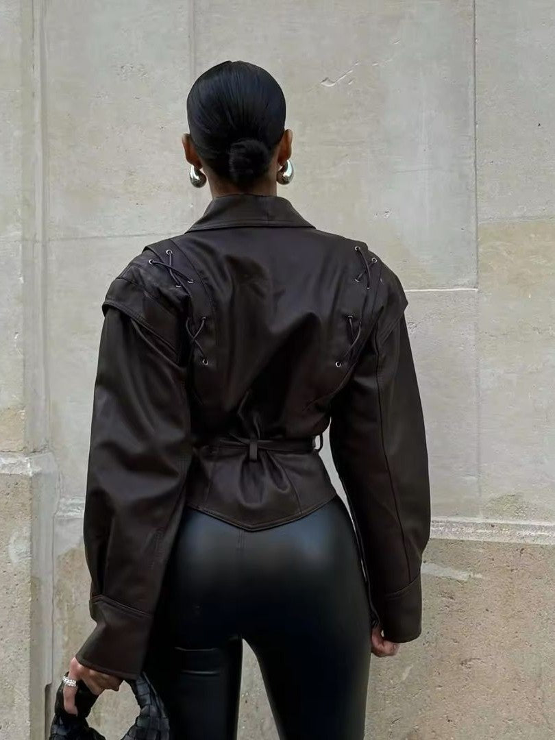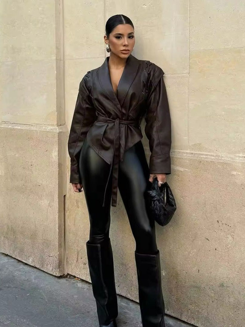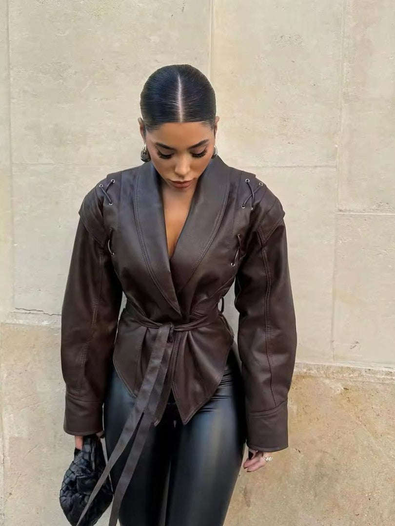 Luvik | Nahka Nauhapidike Kauluspusero Takki
