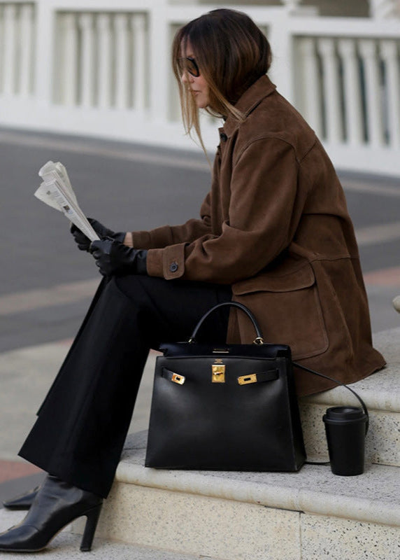 Luvik Suede Button-Up -takki edustaa hienovaraisia ylellisyyksiä ja klassista eleganssia. Erittäin pehmeästä mokasta valmistettu takki tarjoaa rentoa istuvuutta ja erinomaista viimeistelyä tyylikkään, mutta silti mukavan siluetin saavuttamiseksi. Perinteisten nappikiinnitysten, käytännöllisten läpätaskujen ja taidokkaasti muotoiltujen hihansuiden ansiosta tämä takki tuo vaivatta viimeisen silauksen mihin tahansa asukokonaisuuteen. Täydellinen päivittäiseen käyttöön tai juhlavalle illalle, Luvik -takki on joustava lisäys sesonkikokoelmaasi.