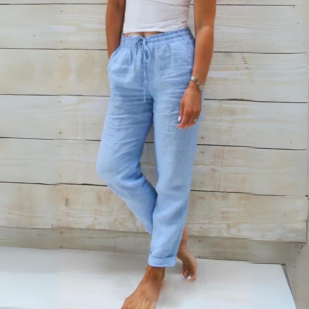 Luvik | Dame bomull- og linbukser med elastisk midje