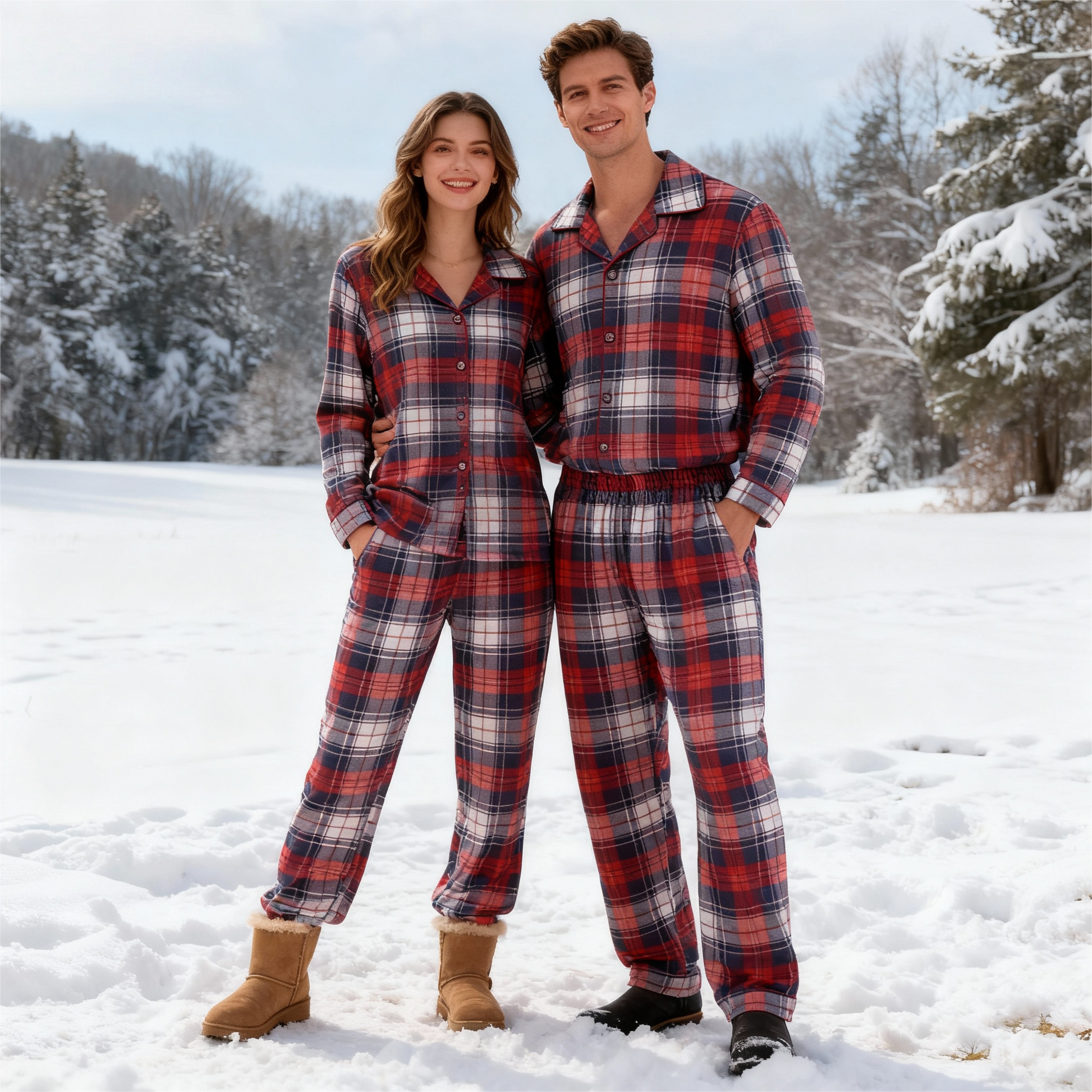 Nämä pyjamat on valmistettu korkealaatuisesta sekoituksesta, joka sisältää 70 % puuvillaa ja 30 % polyesteriä, mikä tarjoaa ihanteellisen yhdistelmän mukavuutta, hengittävyyttä ja kestävyyttä – täydellinen pysymään mukavana jouluaatosta rentouttaviin talvi-aamuihin.