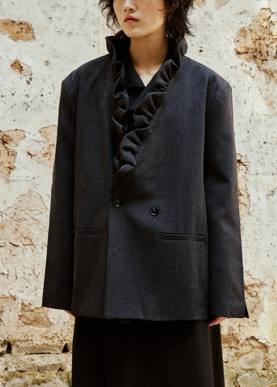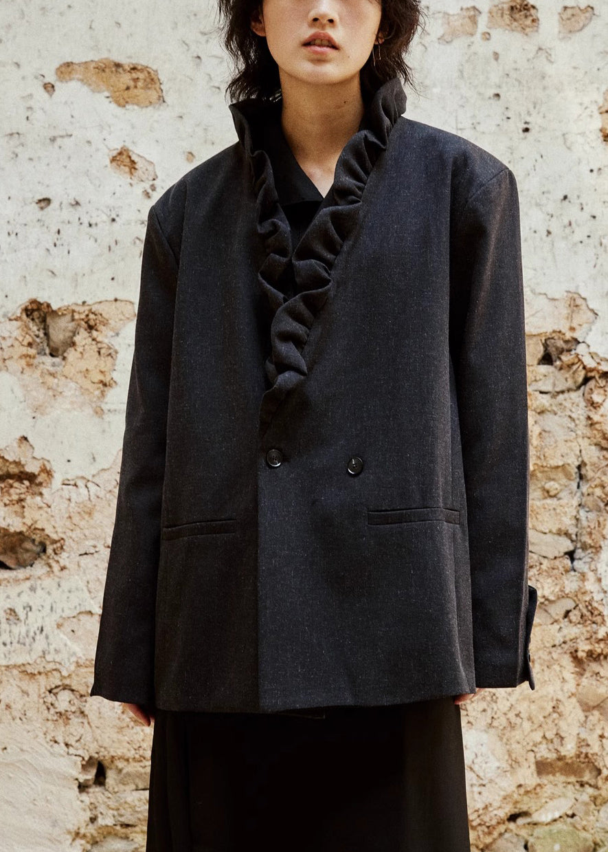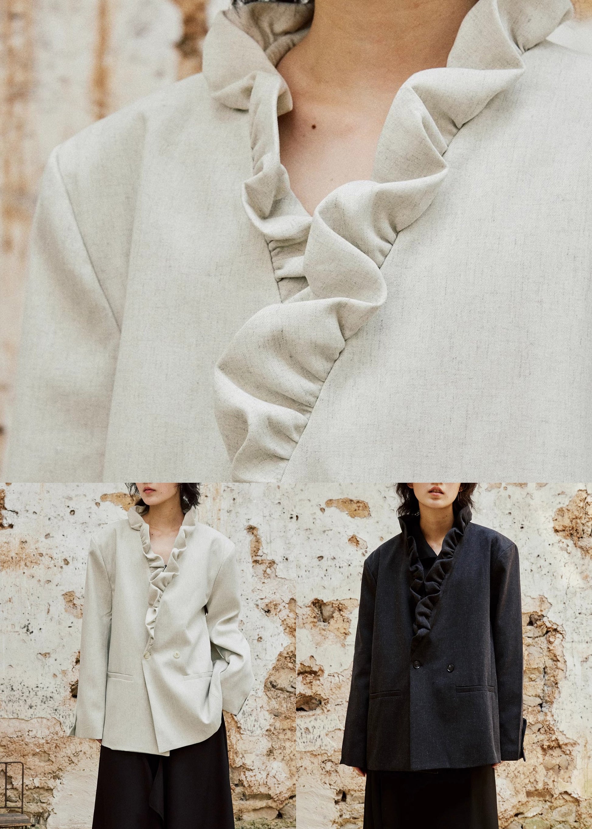 Luvik | V-kauluspainikkeilla varustettu puuvillatakki taskuilla