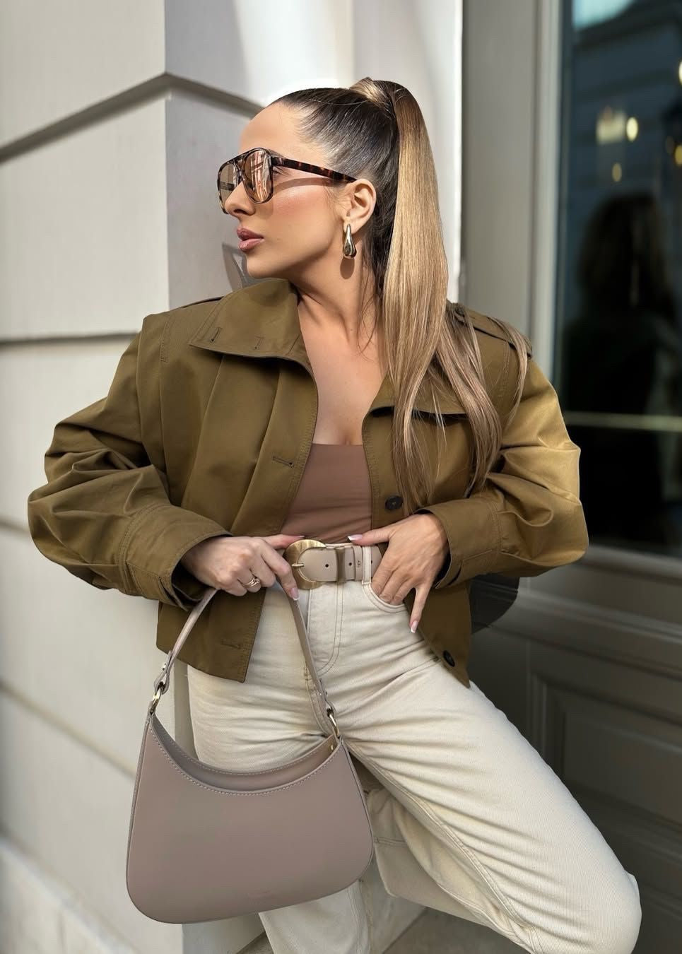 Luvik Button-Up takki, jossa on olkatoppaukset, tuo nykyaikaisen kosketuksen perinteisiin leikkauksiin. Valmistettu pehmeästä ja kevyestä materiaalista, tässä takissa on muodokkaat olkapäät tyylikkäillä olkatoppauksilla, erottuva kaulus ja nappisuljenta edessä. Hienovaraiset laskokset hihoissa lisäävät volyymia ja liikettä, kun taas luvik-helma luo imartelevan siluetin, joka yhdistyy täydellisesti korkeavyötäröisten housujen tai hameiden kanssa.