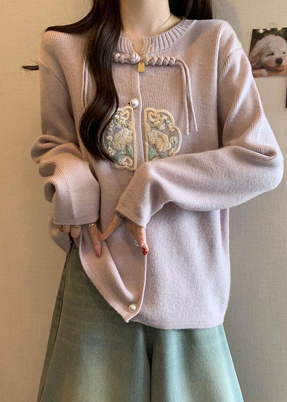 Luvik | Neuletakki Nappi Pompomi Brodeerattu