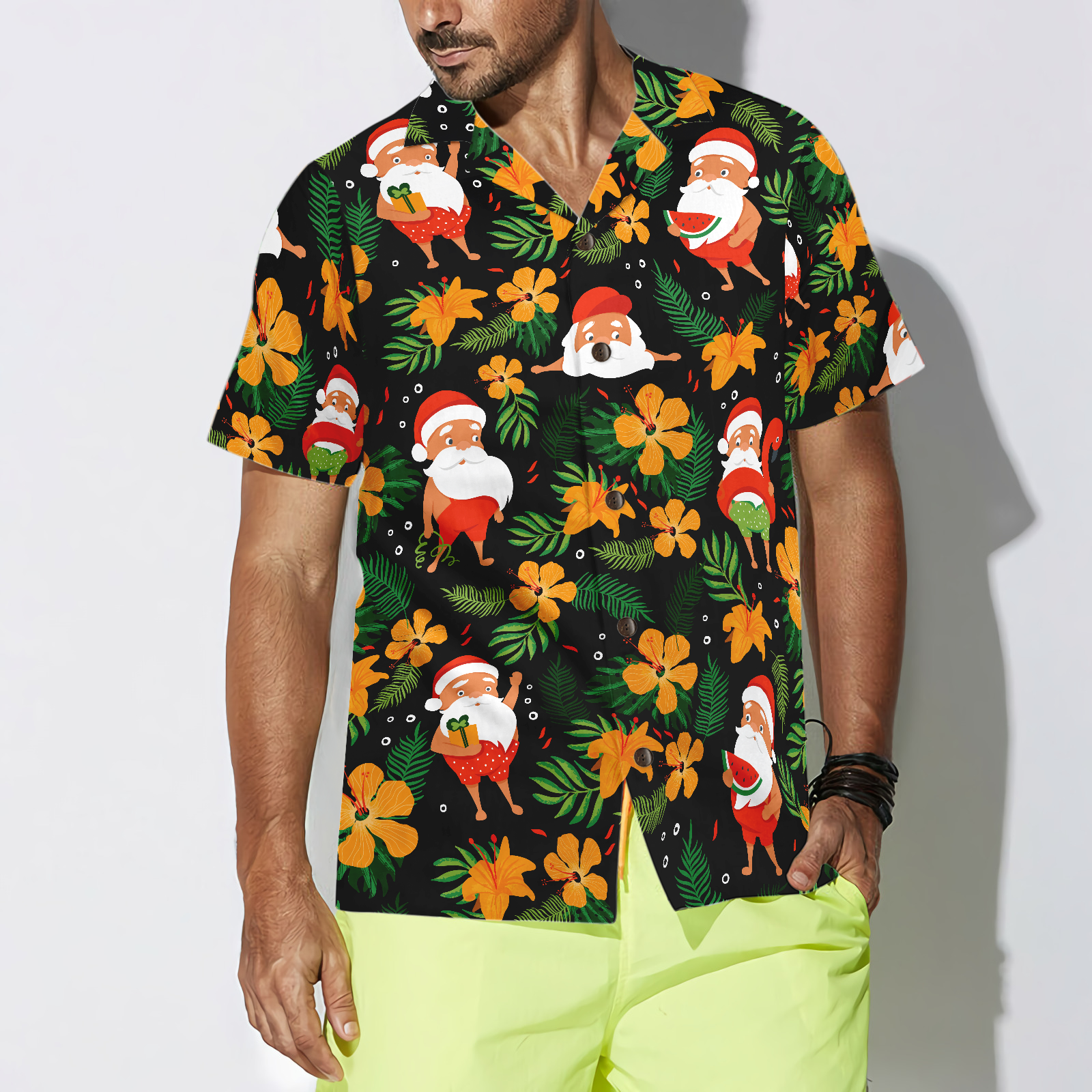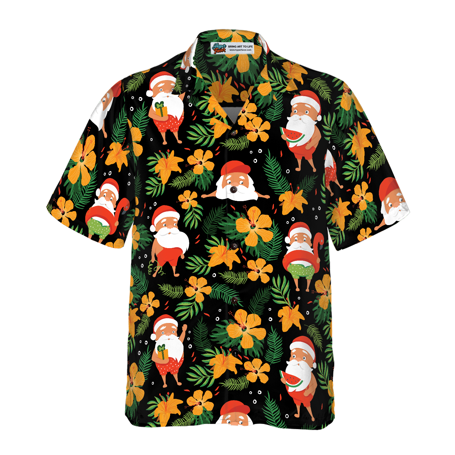 Luvik | Jouluhawaiipaidat Hyperfavor, lyhythihainen Santa-paita trooppisella printillä, joulu-paidan lahjaidea miehille ja naisille