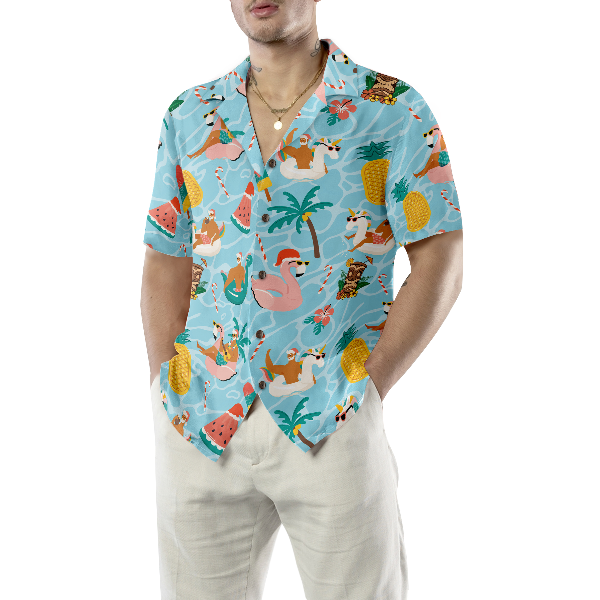 Luvik | Hyperfavor Jouluhawaiipaidat, Santa-ranta-paita lyhythihaisena kesänä, Joulupaidan lahjaidea miehille ja naisille