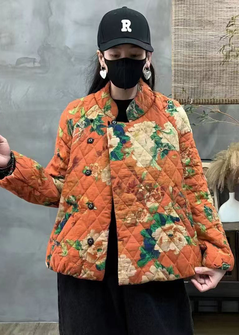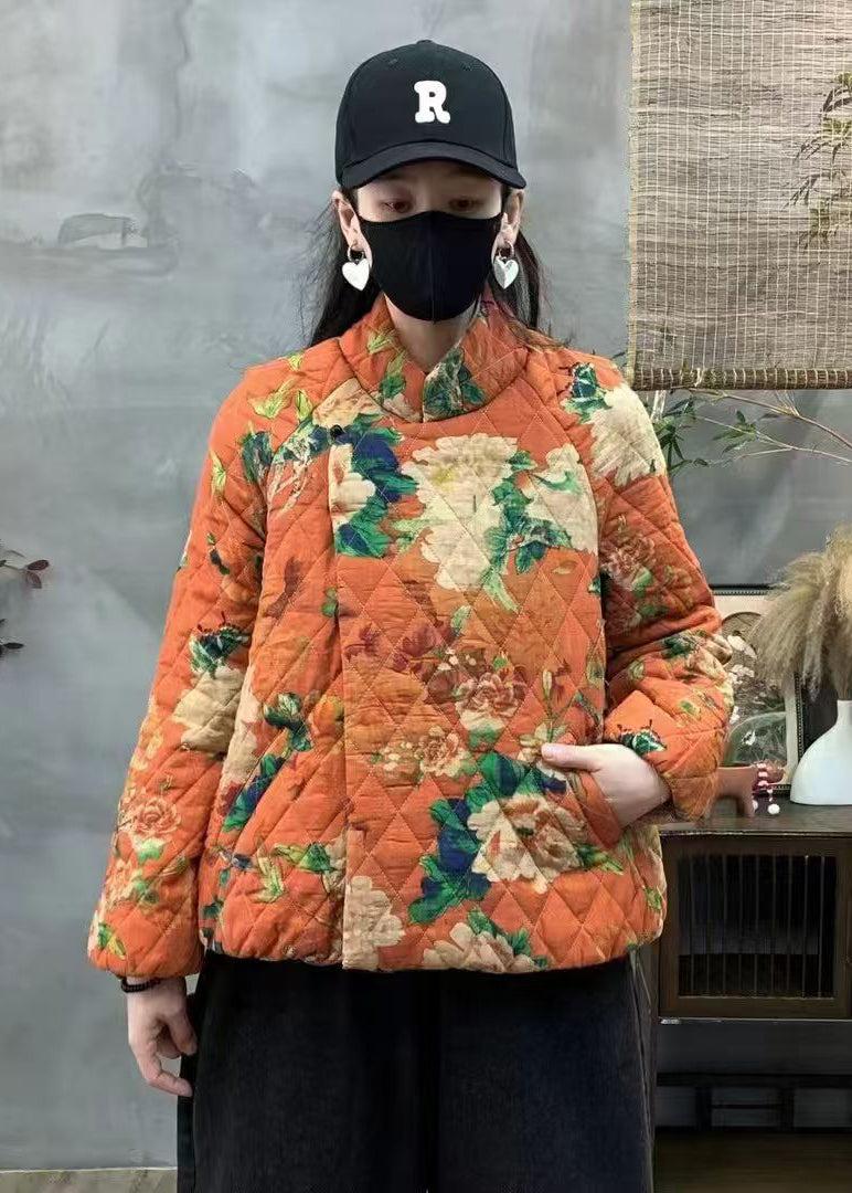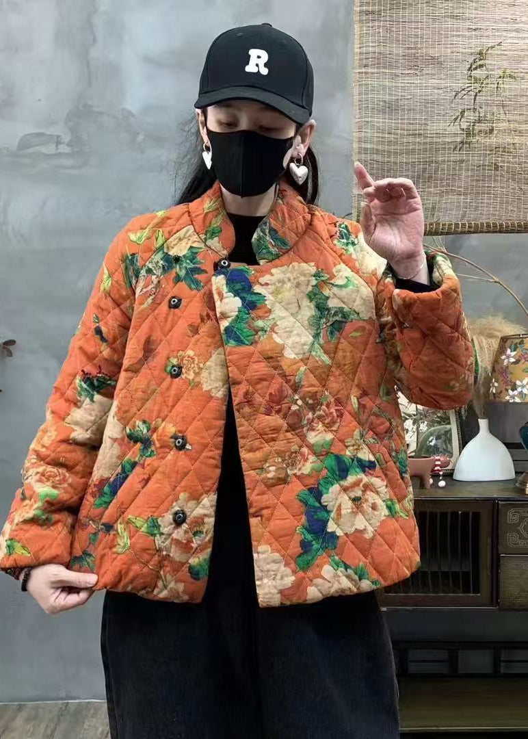 Luvik | Oranssi Suuri Koko Painettu Ohut Puuvillaa Täytetty Talvi Takit