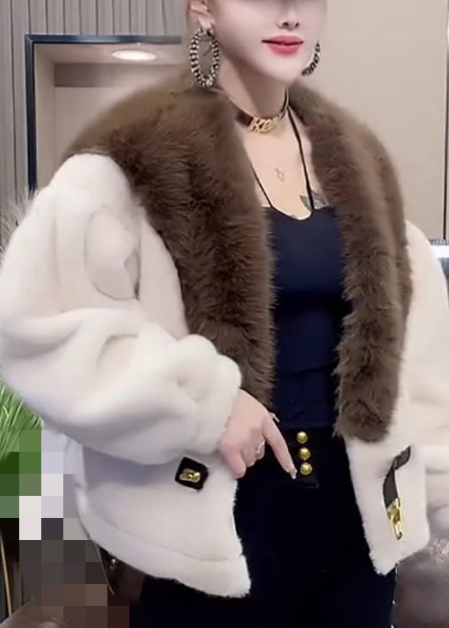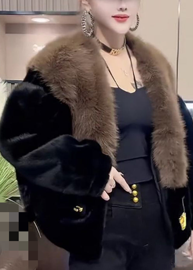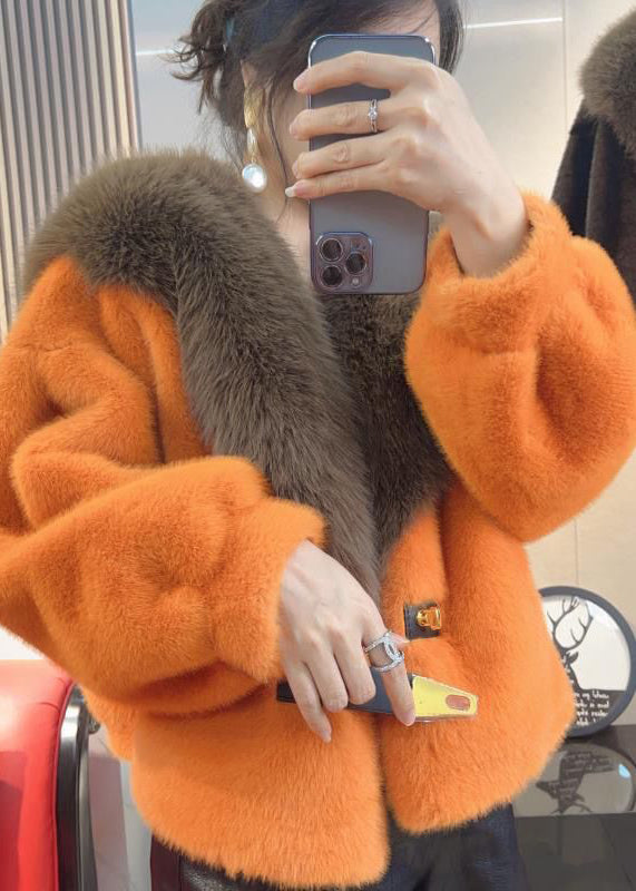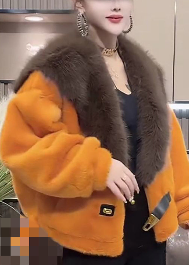 Luvik | Oranssi turkisnapilla varustettu patchwork-minkkitakki