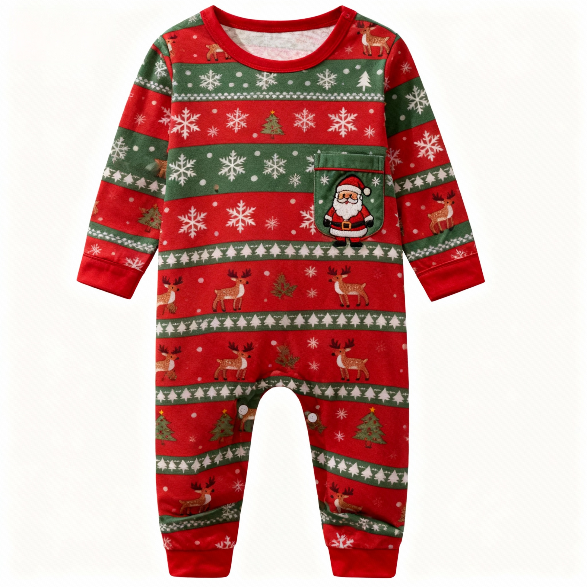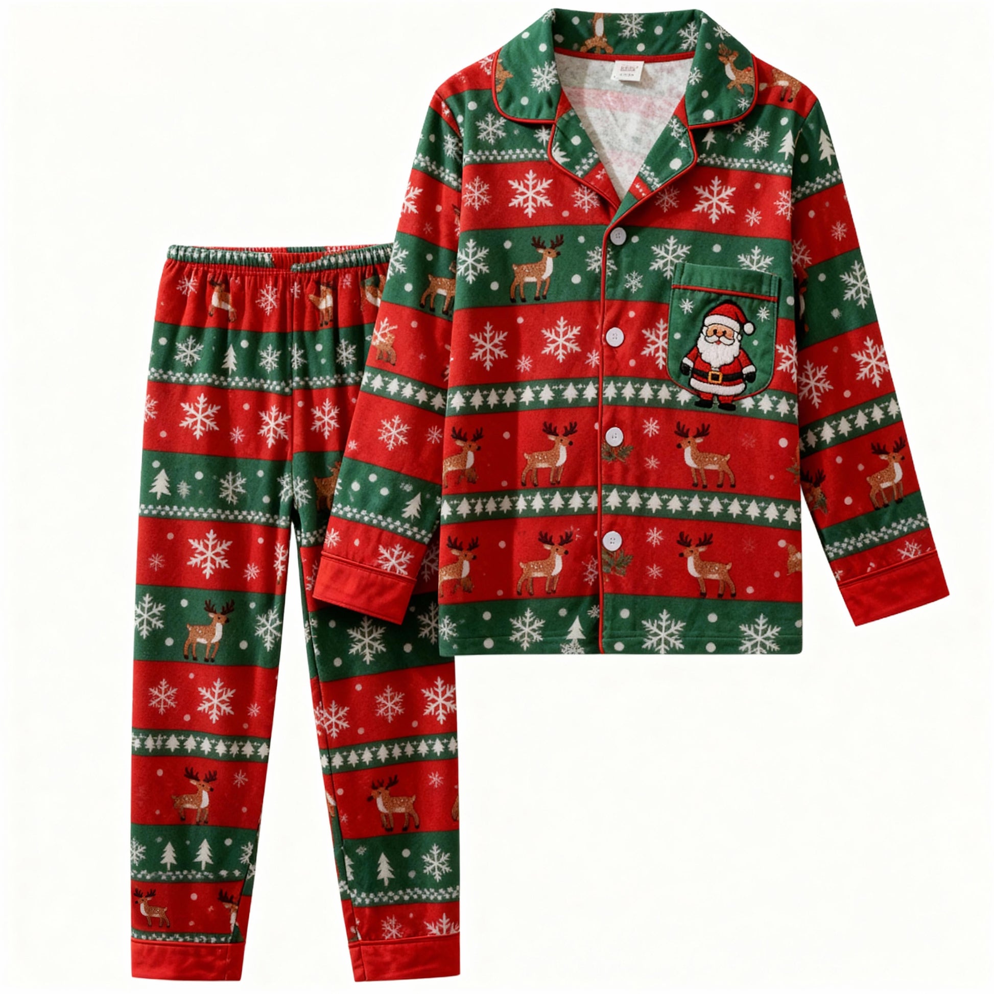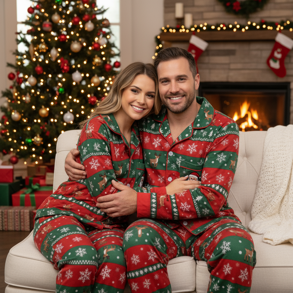 Nämä pyjamat on valmistettu korkealaatuisesta 70 % puuvillan ja 30 % polyesterin sekoituksesta ja tarjoavat ihanteellisen yhdistelmän mukavuutta, hengittävyyttä ja kestävyyttä – pitäen sinut mukavana jouluaatosta rentoihin talviaamuihin.