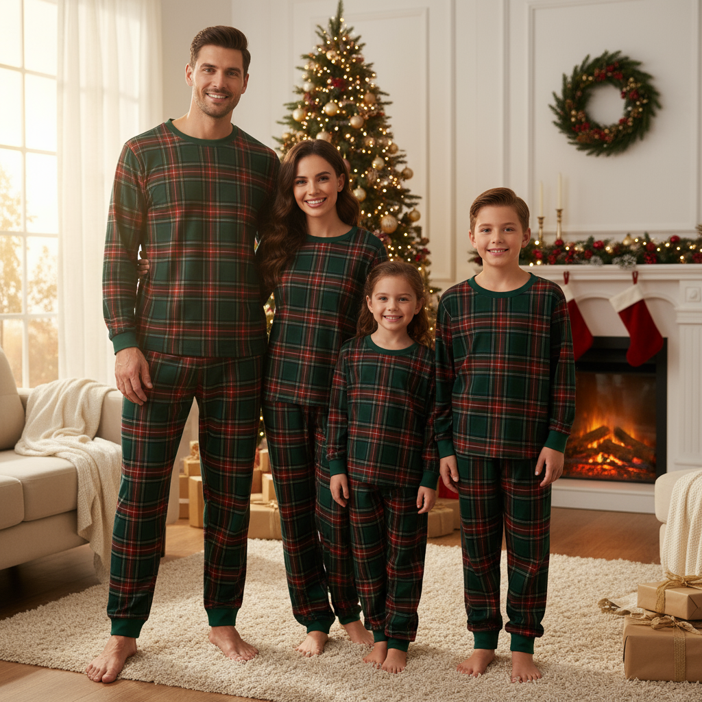 Luvik | Lomaperheen Ruudullinen Yhteensopiva Pyjamakokonaisuus