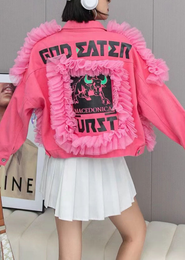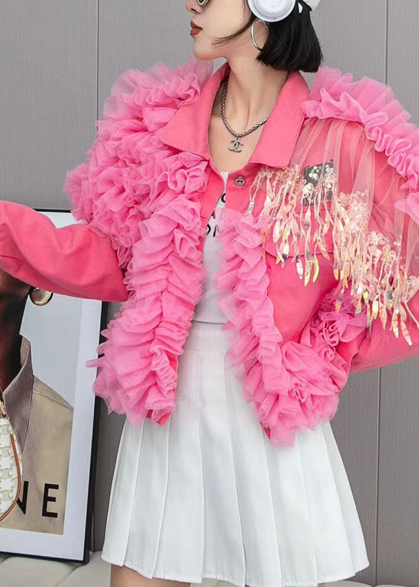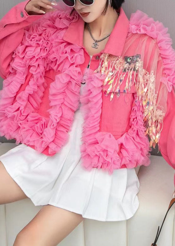 Luvik | Rosa Tülli Volant Laukut Patchwork Farkkutakki
