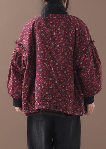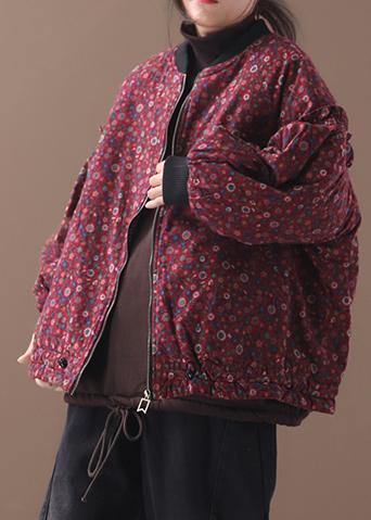 Luvik | Talvitakki suurikokoiselle vetoketjulla, punaisista kukista tehtyyn peitekuvioon, pyöreä kaulus, lyhyet takit