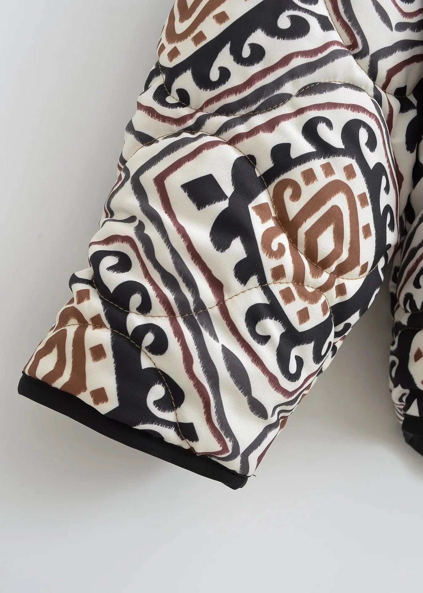 Aseta räikeä kohokohta vaatekaappiisi tämän eläväisen luvik-printtijakun kanssa, jossa on kontrastiväri. Tyylikäs pystykaulus ja trendikäs yhdistelmä kuvioita tekevät siitä ihanteellisen valinnan viileämmille päiville. Hieno puuvillavuoraus tarjoaa lämpöä ja mukavuutta tinkimättä tyylistä. Täydellinen yhdistettäväksi mekkojen tai housujen kanssa, tämä takki tulee olemaan suosikkivaatteesi poikkeuksellisissa asuissa.