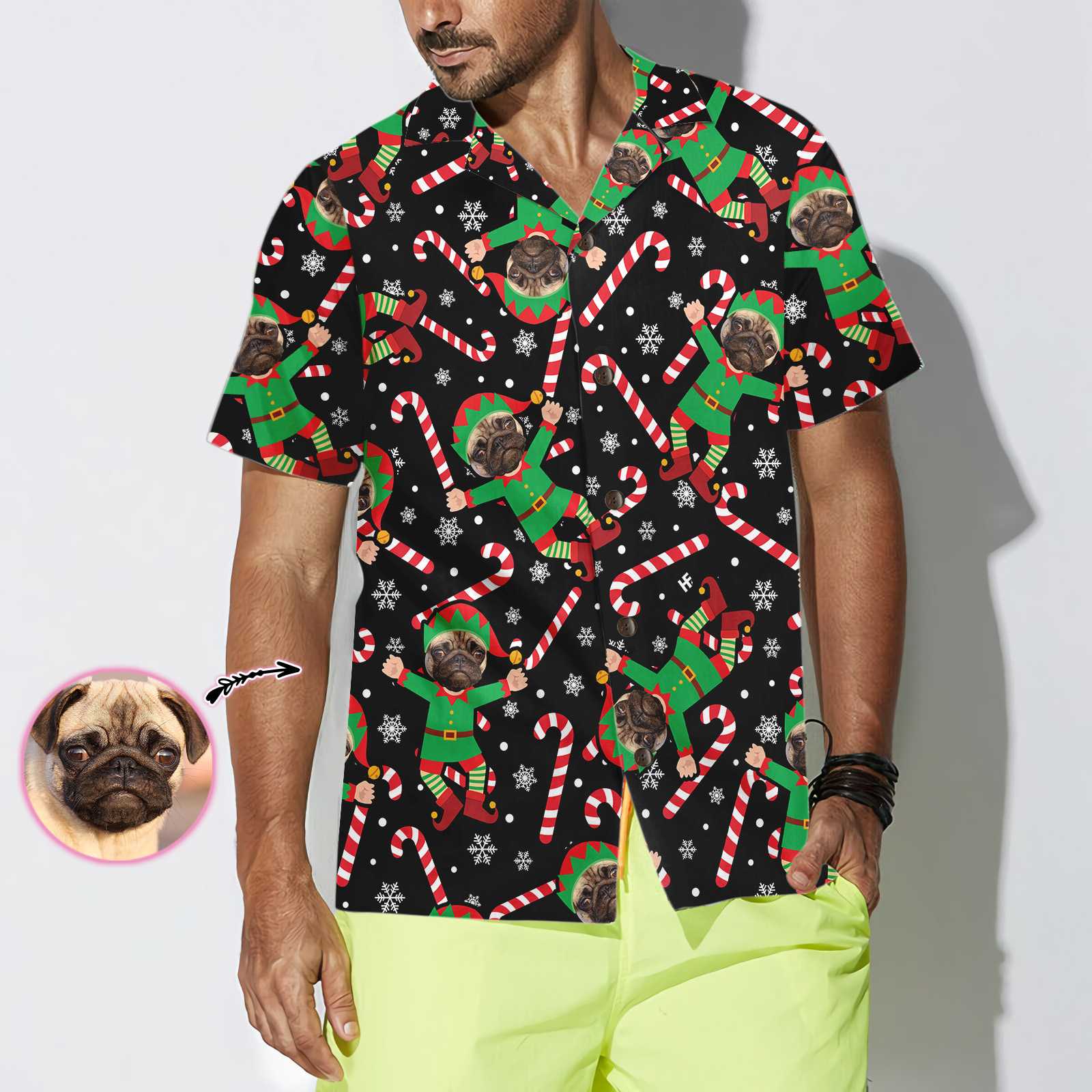 Luvik | Hawaii-paita Pug Elf mittatilaustyönä, hauska joulupaita Pug miehille ja naisille, henkilökohtainen joululahja