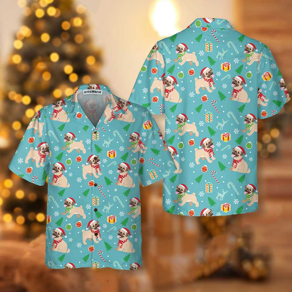 Luvik | Iloinen joulu hawaiipaita mopille, Hauska joulupaita mopseille