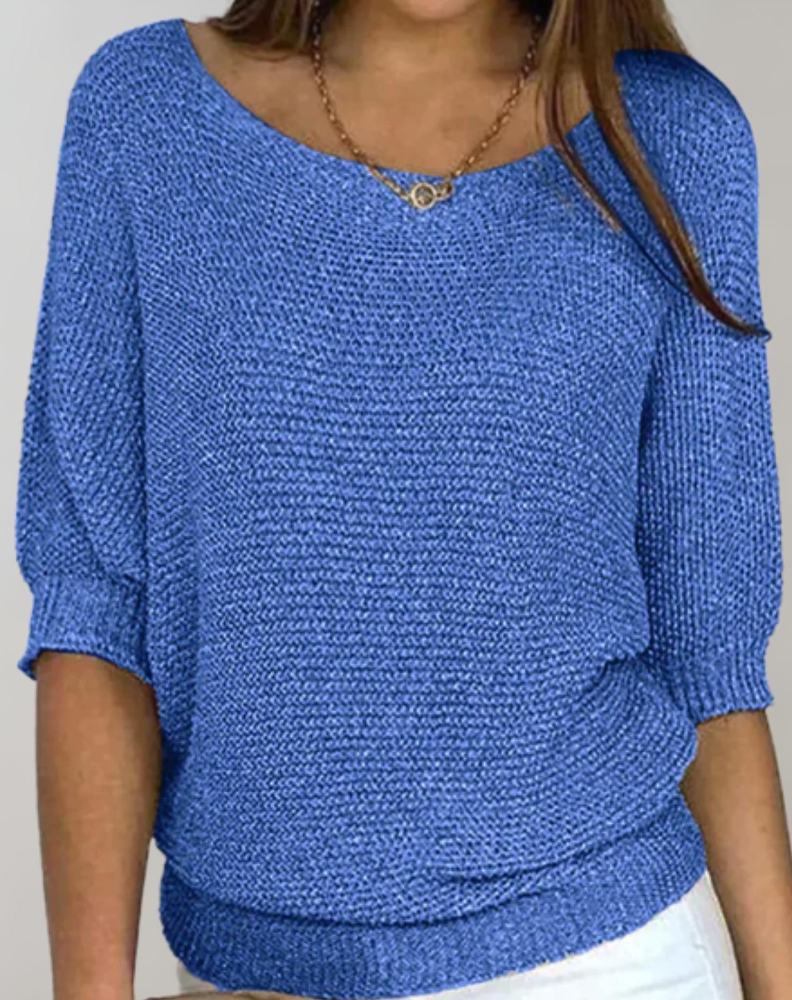 Luvik | Kaunis vyötärölle sopiva neule pyöreällä pääntiellä ja yksinkertaisilla puolpitkillä hihoilla