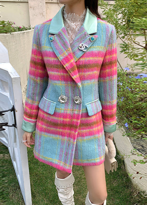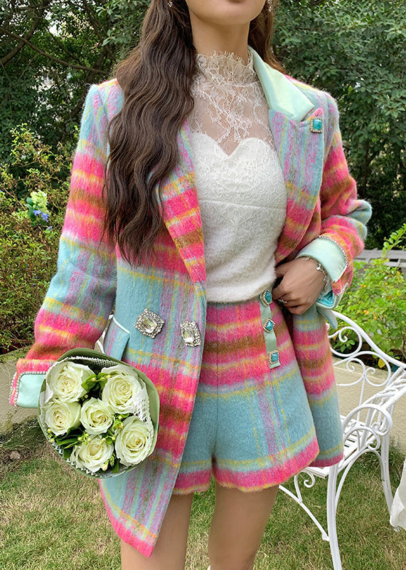 Luvik | Rose Ristikkäinen Ruudullinen Napillinen Villakangastakki ja Hameet Kahden Osan Setti