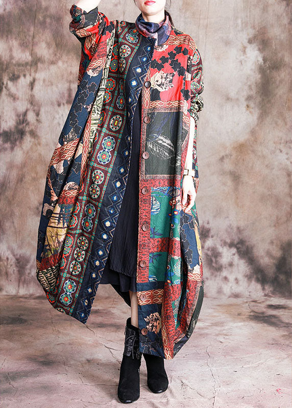 Luvik | Punainen painatus nappi Epäsymmetrinen muotokuvio takit pitkät hihat