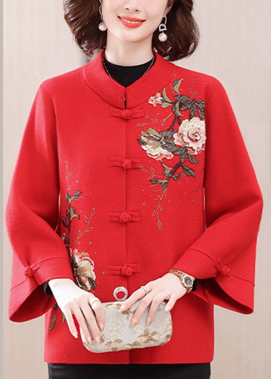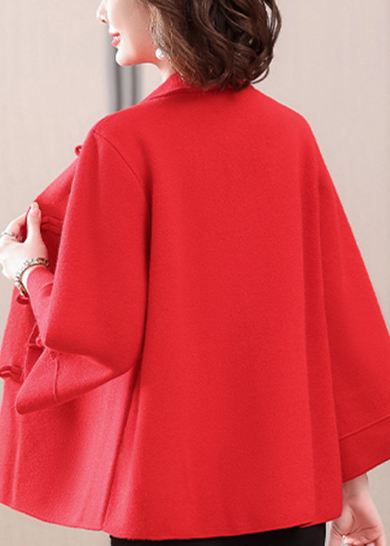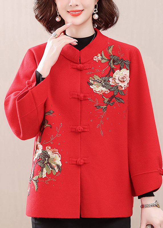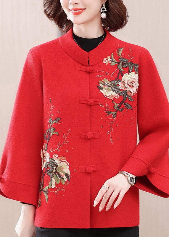 Luvik | Painettu villa takki punaisella korkealla kauluksella