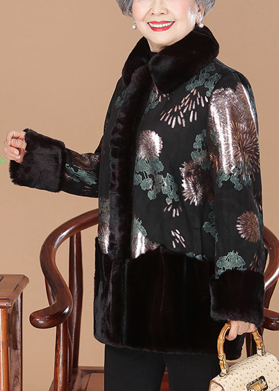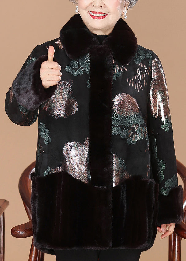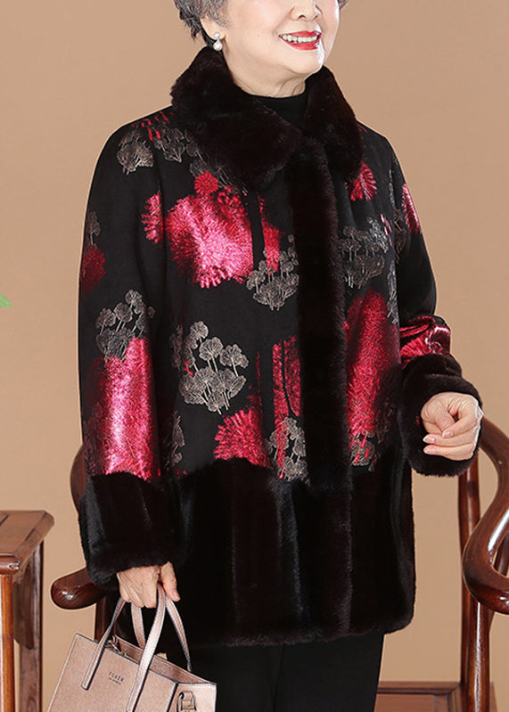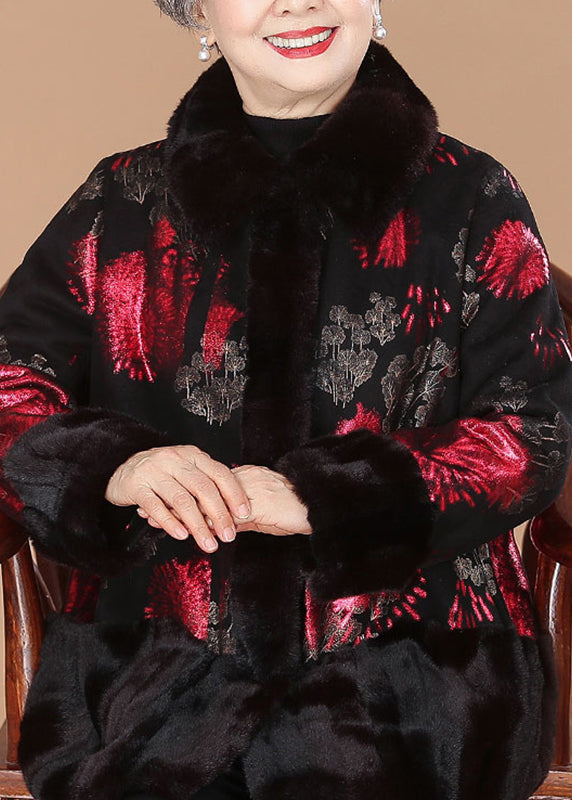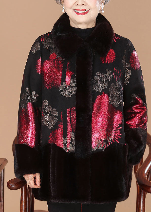Luvik | Punainen karvakaulus Painettu Mink Sametti Paksut Takit