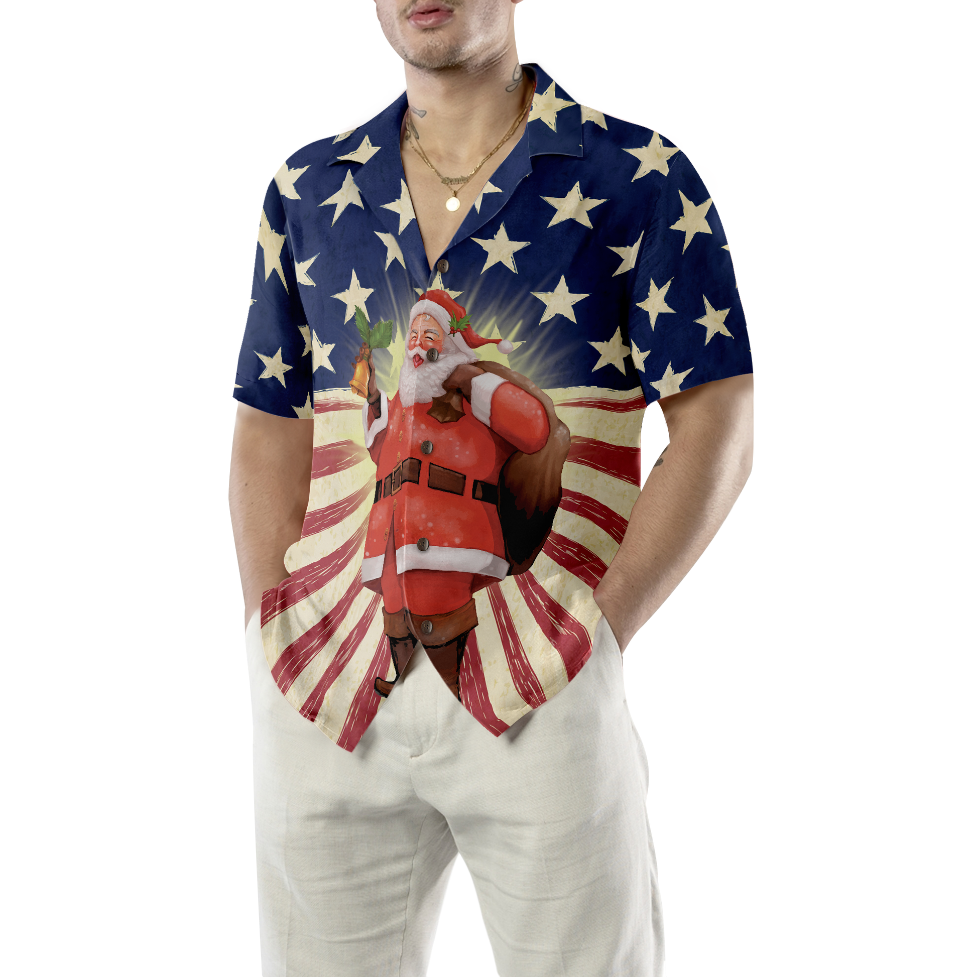 Luvik | Hyperfavor Joulu Santa Amerikka Hawaiian-paita, lyhythihaiset joulupaidat, nappikauluspaita miehille ja naisille