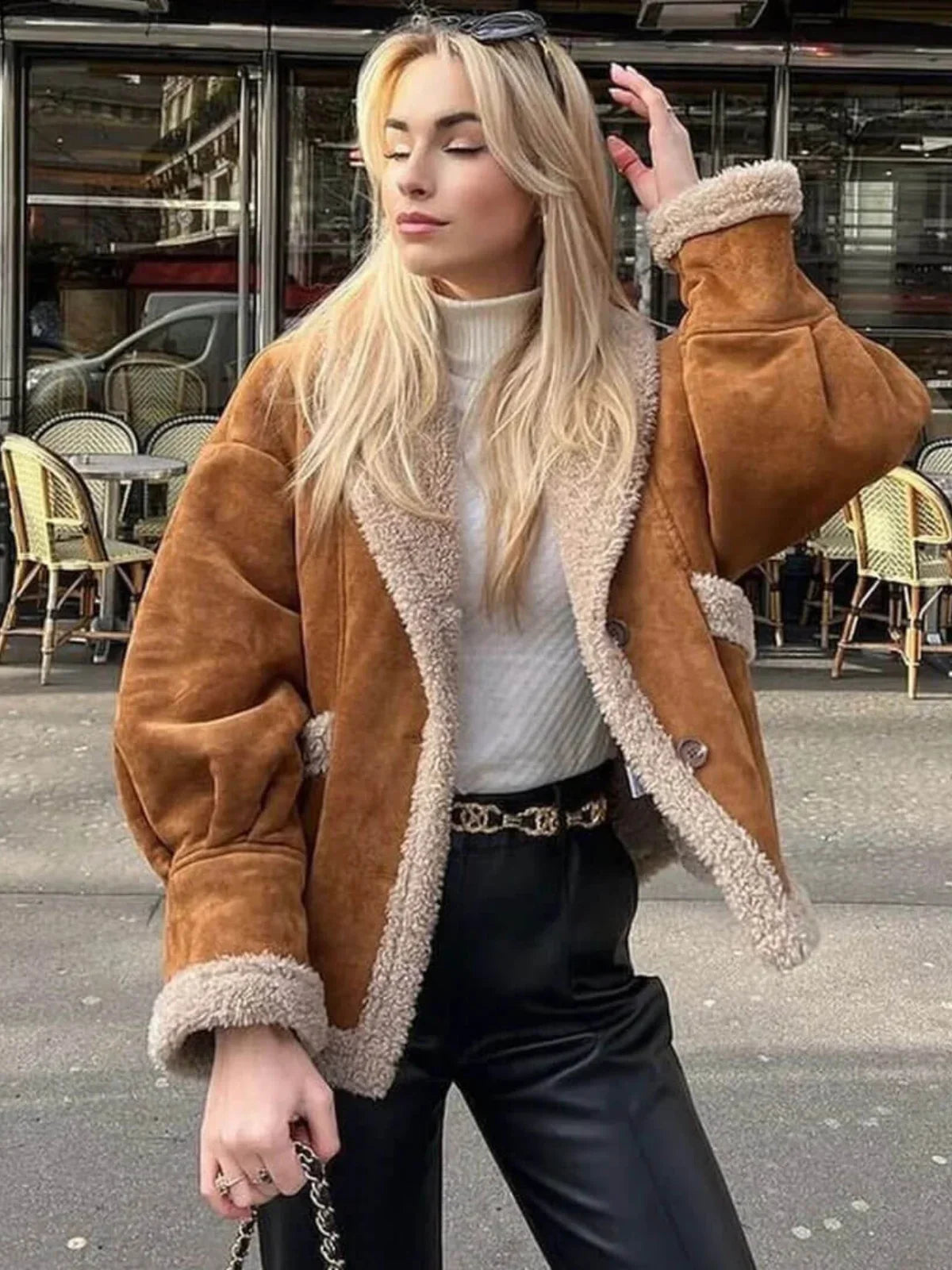 Nauti mukavuudesta ja tyylistä Luvik Sherpa-vuorillisessa tekonahkajaketissa. Tämä hienostunut takki on valmistettu pehmeästä tekonahkasta ja siinä on mukava Sherpa-vuori, joka tarjoaa sekä lämpöä että miellyttävän tekstuurin. Löysällä, ylisuurena mitoituksena se on täydellinen heitettäväksi päälle suosikkitalvivaatteidesi. Sherpa-reunus kauluksessa, hihoissa ja helmassa lisää viehättävää, vintage-tyylistä ilmettä, kun taas tilavat taskut takaavat sekä elegantin että käytännöllisen ratkaisun. Täydellinen kylmiin päiviin, tämä takki tuo harmonisen yhdistelmän mukavuutta ja maalaishenkistä tyyliä mihin tahansa rentoon asuun.
