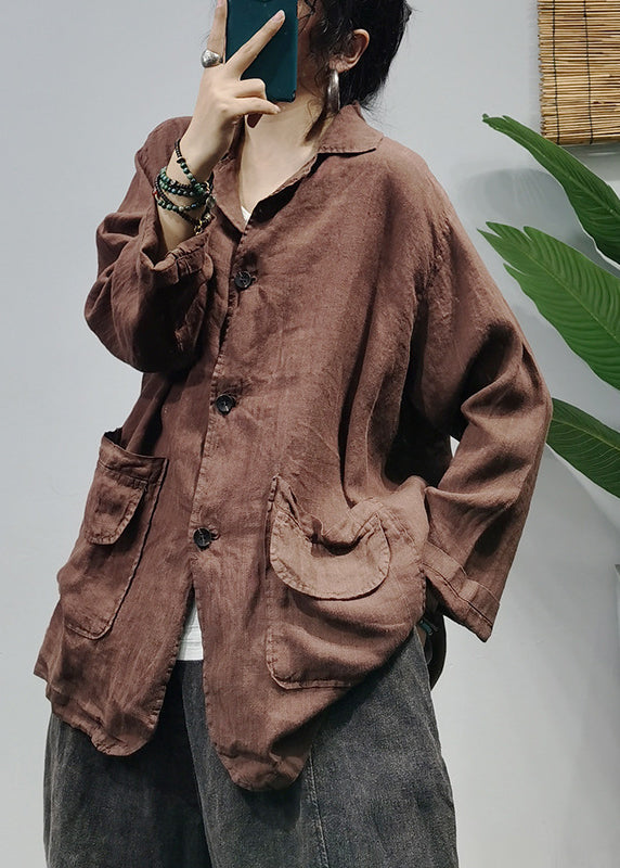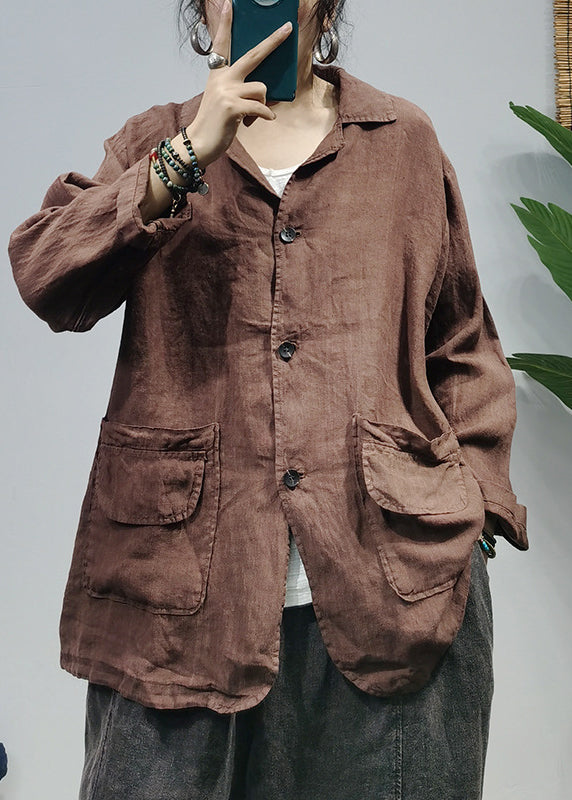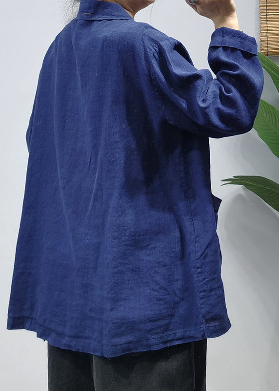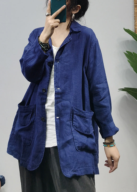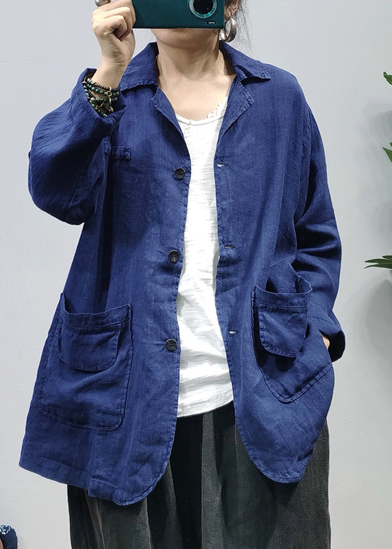Luvik | Sininen pellavainen takki Peter Pan -kauluksella nappien ja pitkien hihojen kanssa