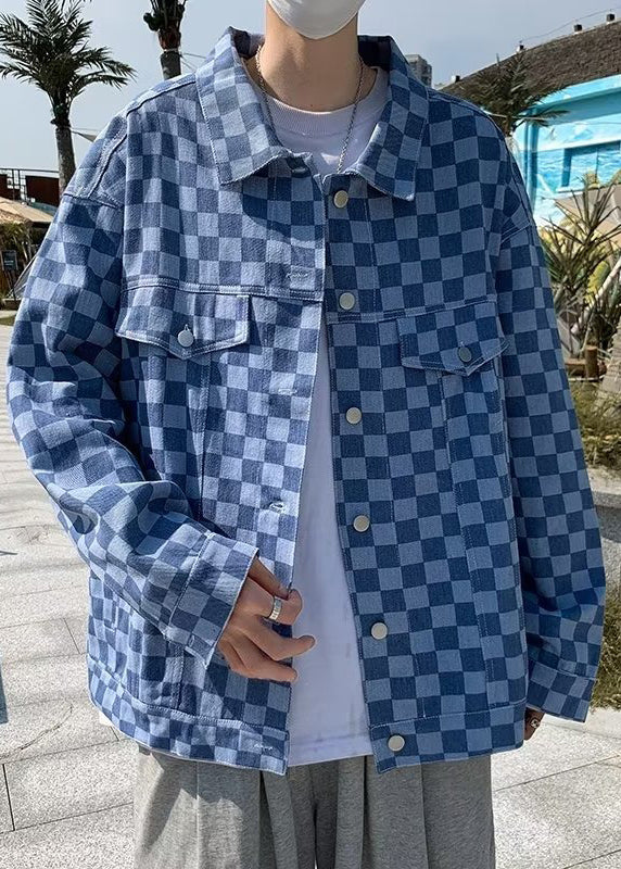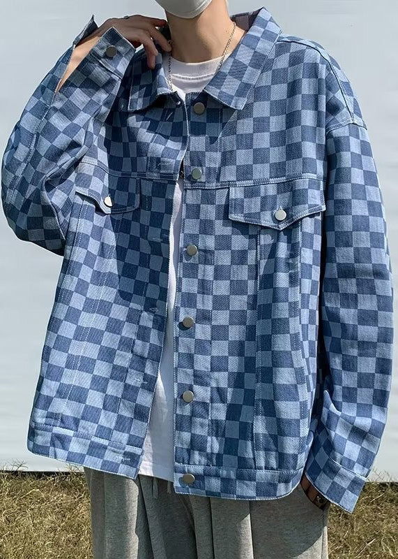 Luvik | Miesten siniruutuiset farkkutakit, joissa on napit ja taskut
