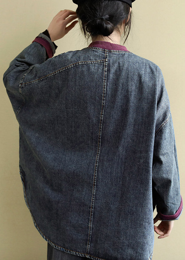 Luvik | Denim päällystakkia sininen patchwork O-kaula-aukko muotoilu pitkä-lyhyt puuvillasta