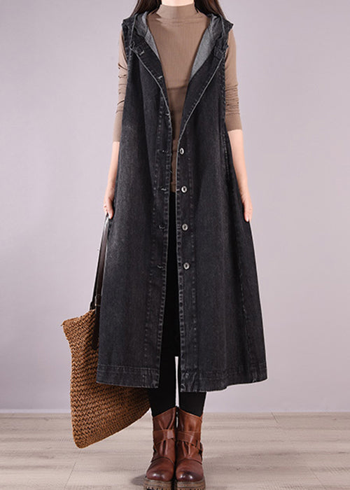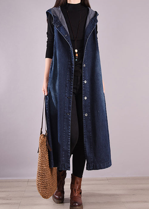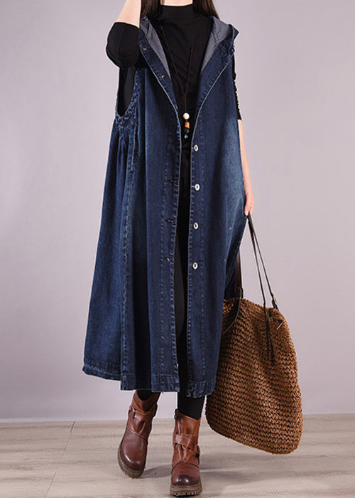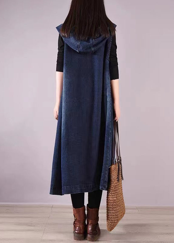 Luvik | Pitkät, hihattomat sinimekkoiset lännen denimtakki huppulla
