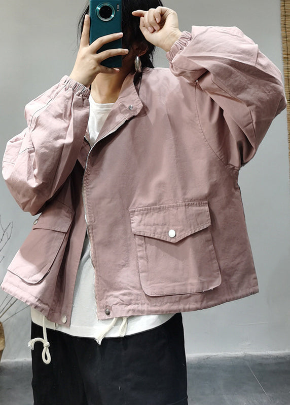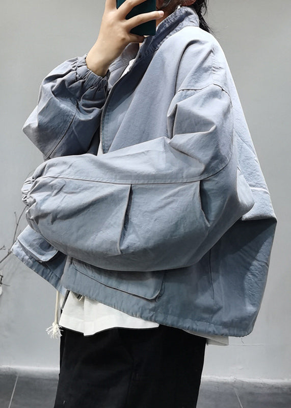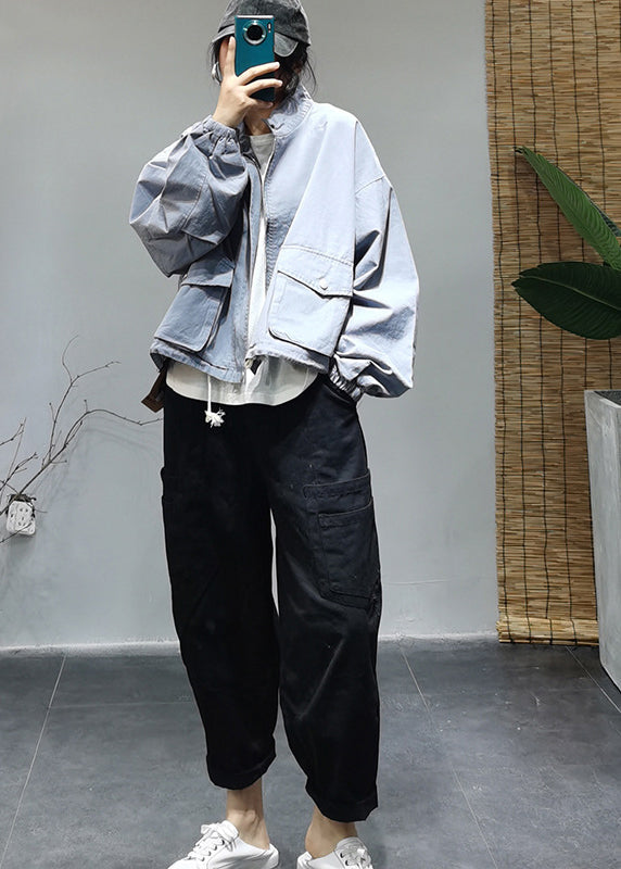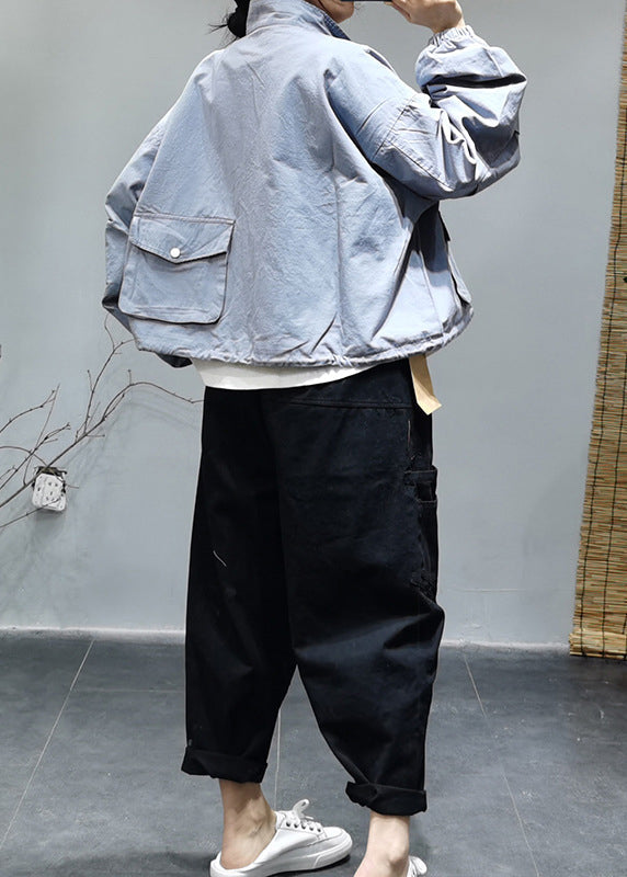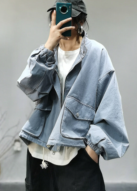 Luvik | Vaaleansininen korkeakauluksinen puuvillatakki, jossa on vetoketju, joustava naru, taskut ja pitkät hihat
