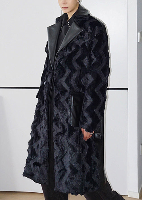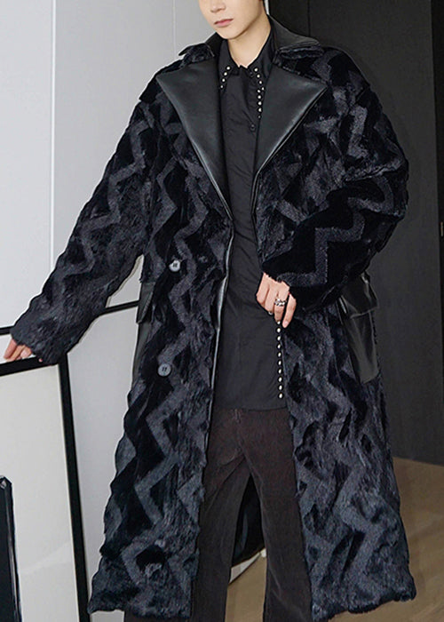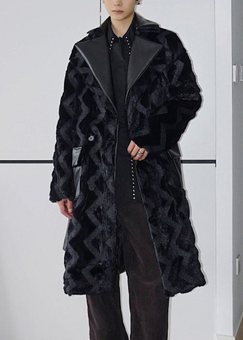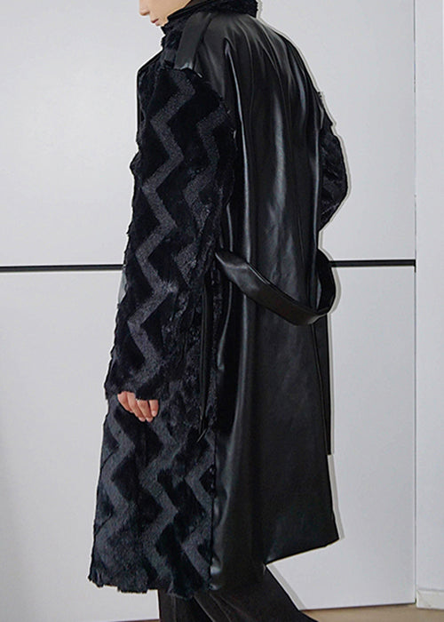 Luvik | Synteettinen nahka patchwork vyö miesten takit kaksinkertainen kerros talvi