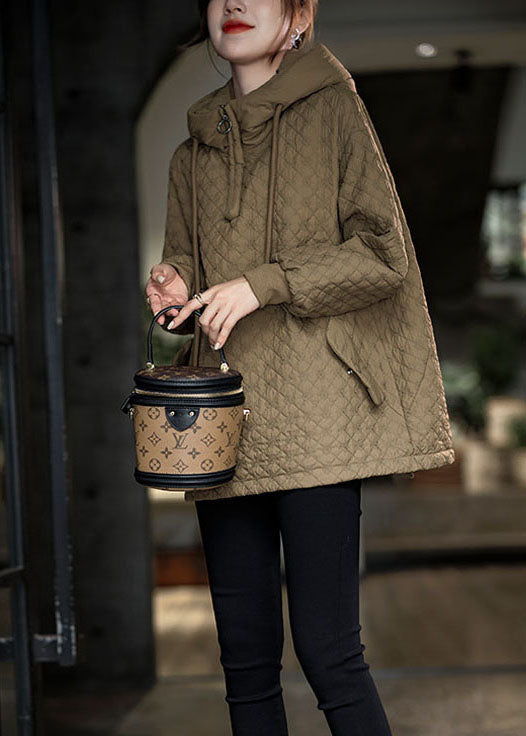 Luvik | Sukatakkia suklaanvärinen hupulla, jossa on naru ja hieno puuvillavetoketju, talvikäyttöön tarkoitetut vuorattuja takkeja