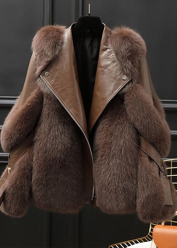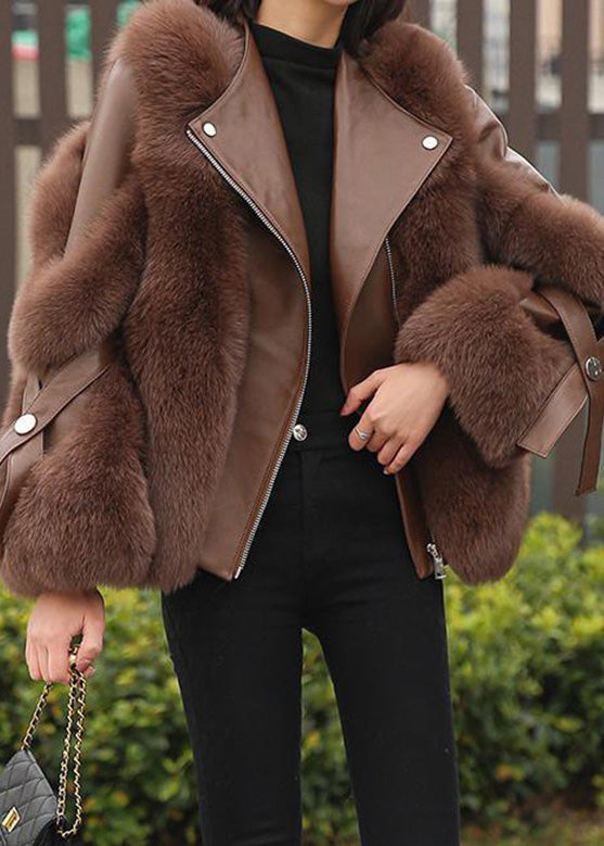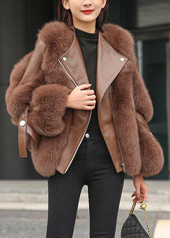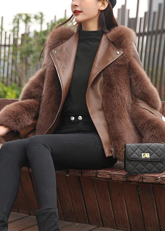 Luvik | Suklaa Renard Vetoketju Nahka ja Tekoturkki Talvitakit