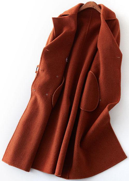 Luvik | Sukatutti tummasta suklaavillasta suurille naisille, pitkä kaksirivinen takki, villainen ulkovaatteet Notch