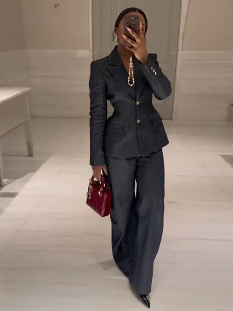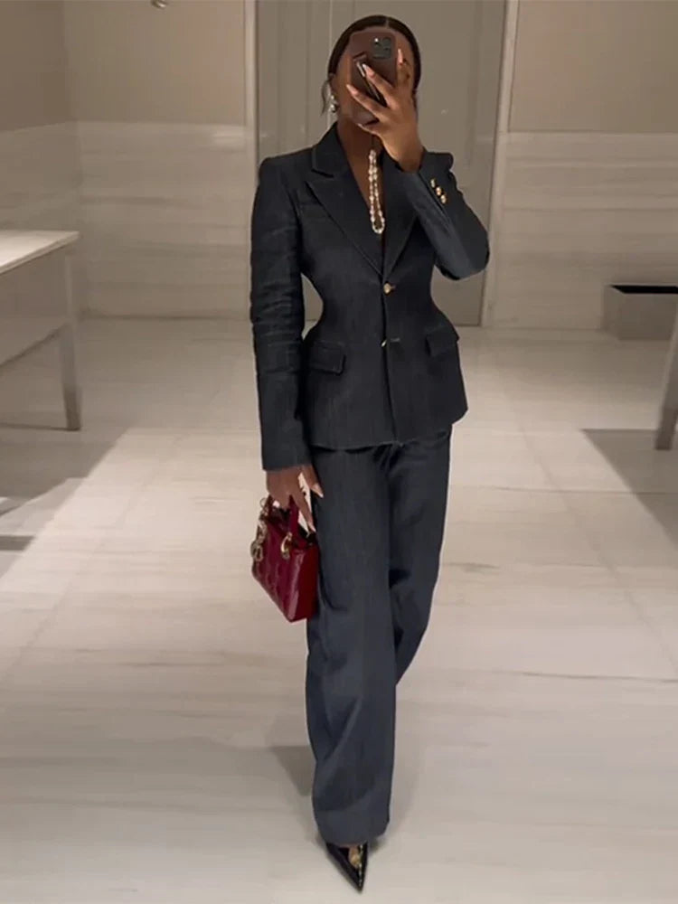 Luvik | Takki Korkeavyötäröiset Farkut Toimisto Kaksiosainen Puku