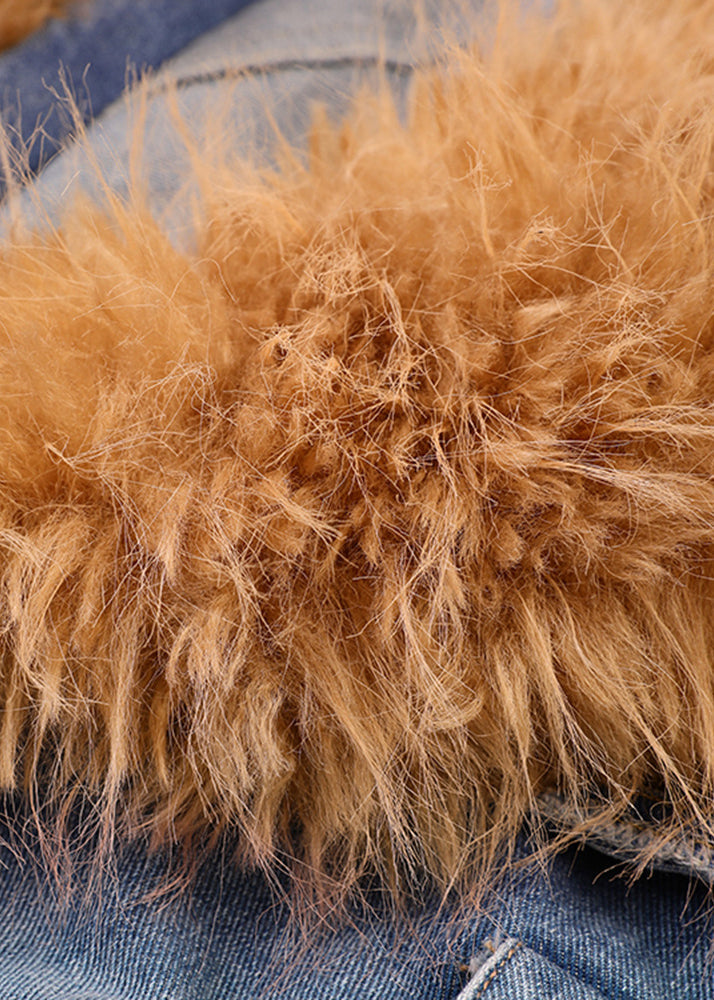 Luvik | Pitkät farkkutakit vyön kanssa tekoturkiskauluksella sininen